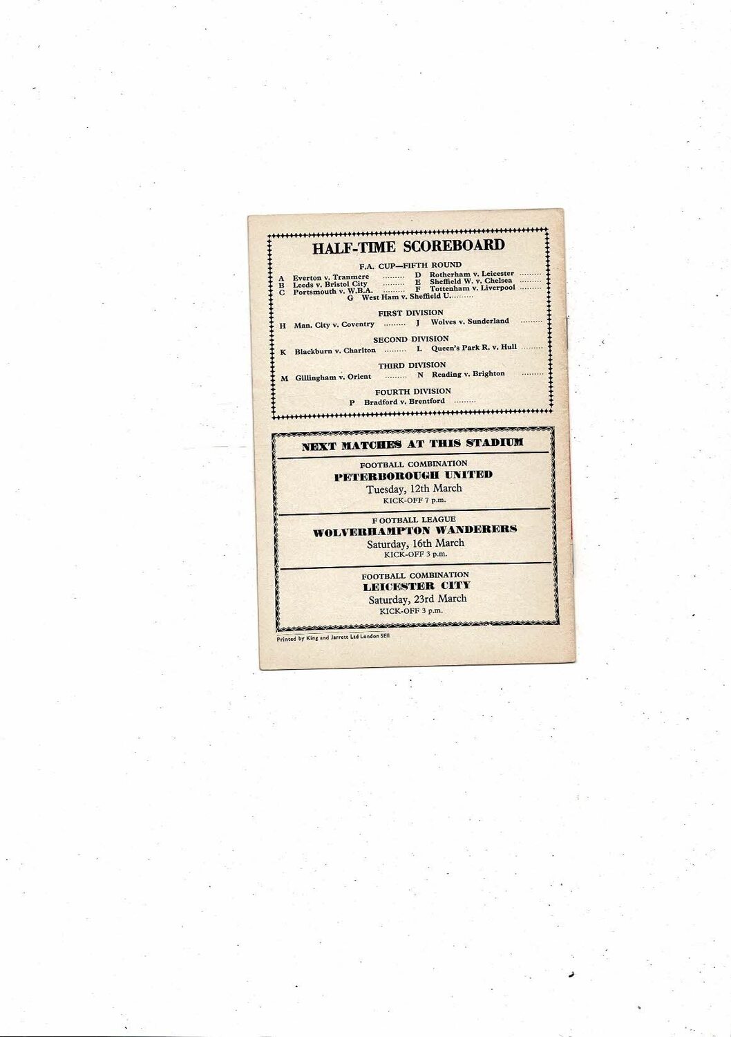 This Original Football Programme is creased. No handwriting. Please see scans