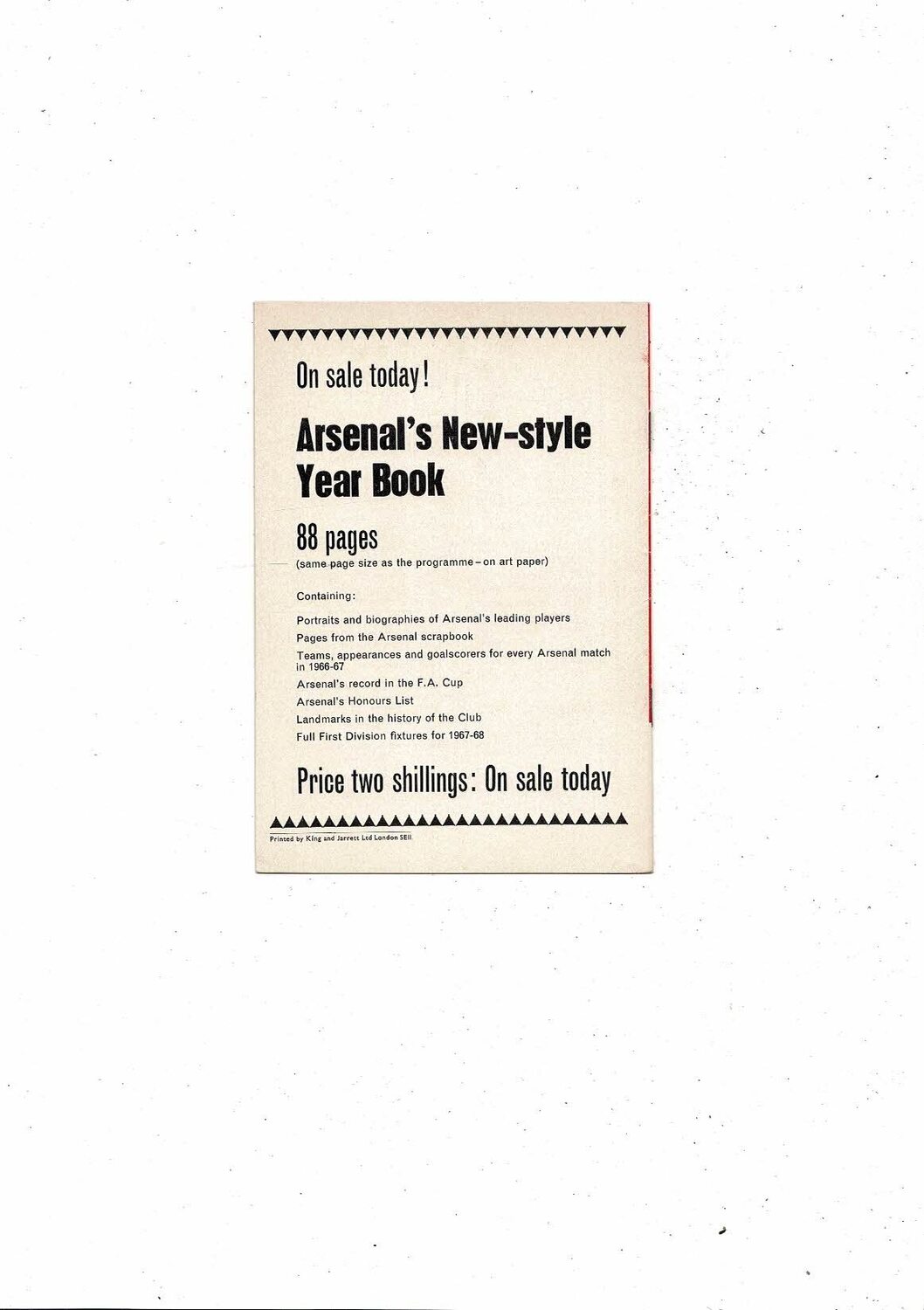 1967/68 Arsenal v Blackburn Rovers League Cup Football Programme