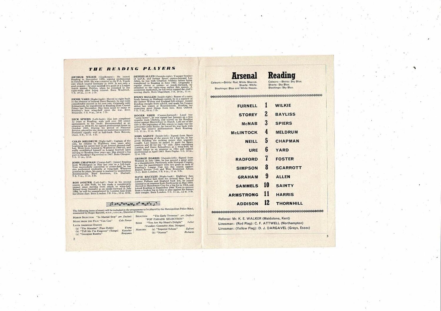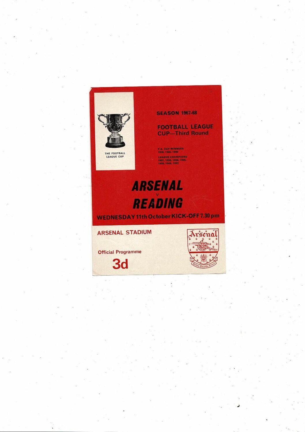 1967/68 Arsenal v Reading League Cup Football Programme