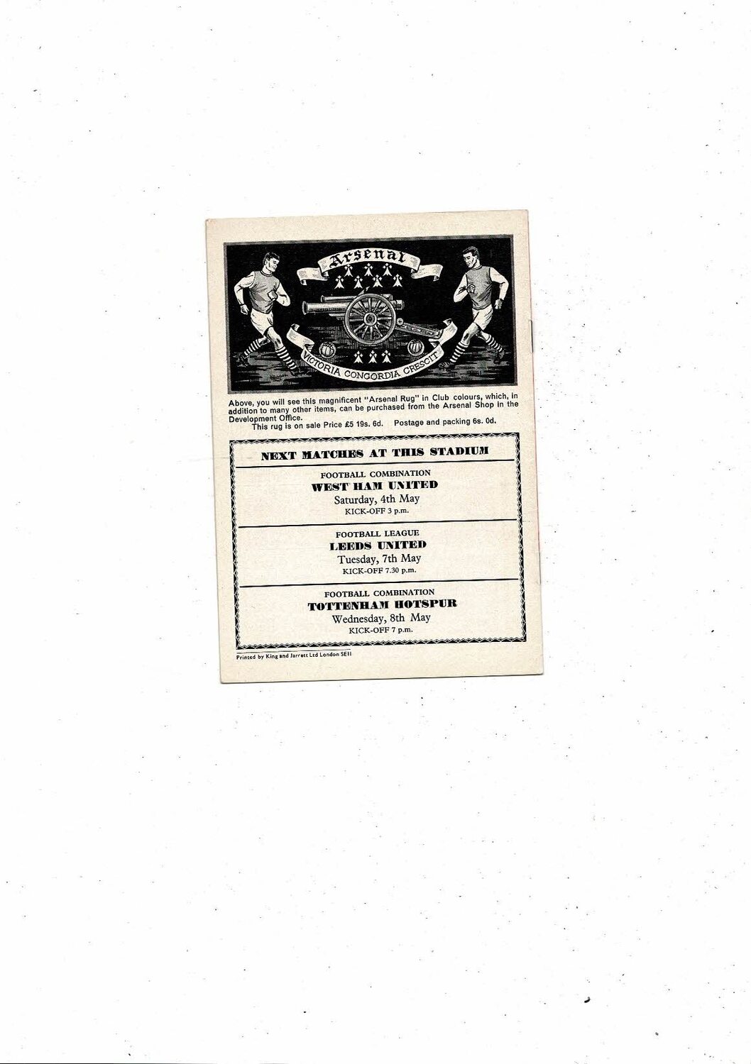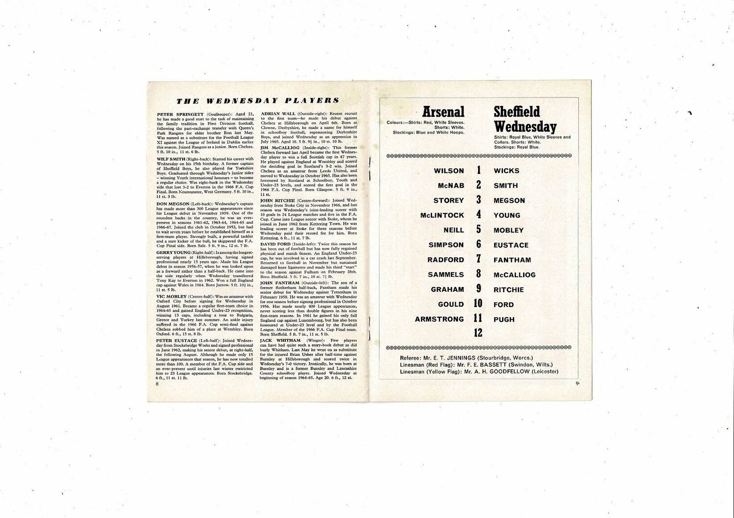 1967/68 Arsenal v Sheffield Wednesday Football Programme April