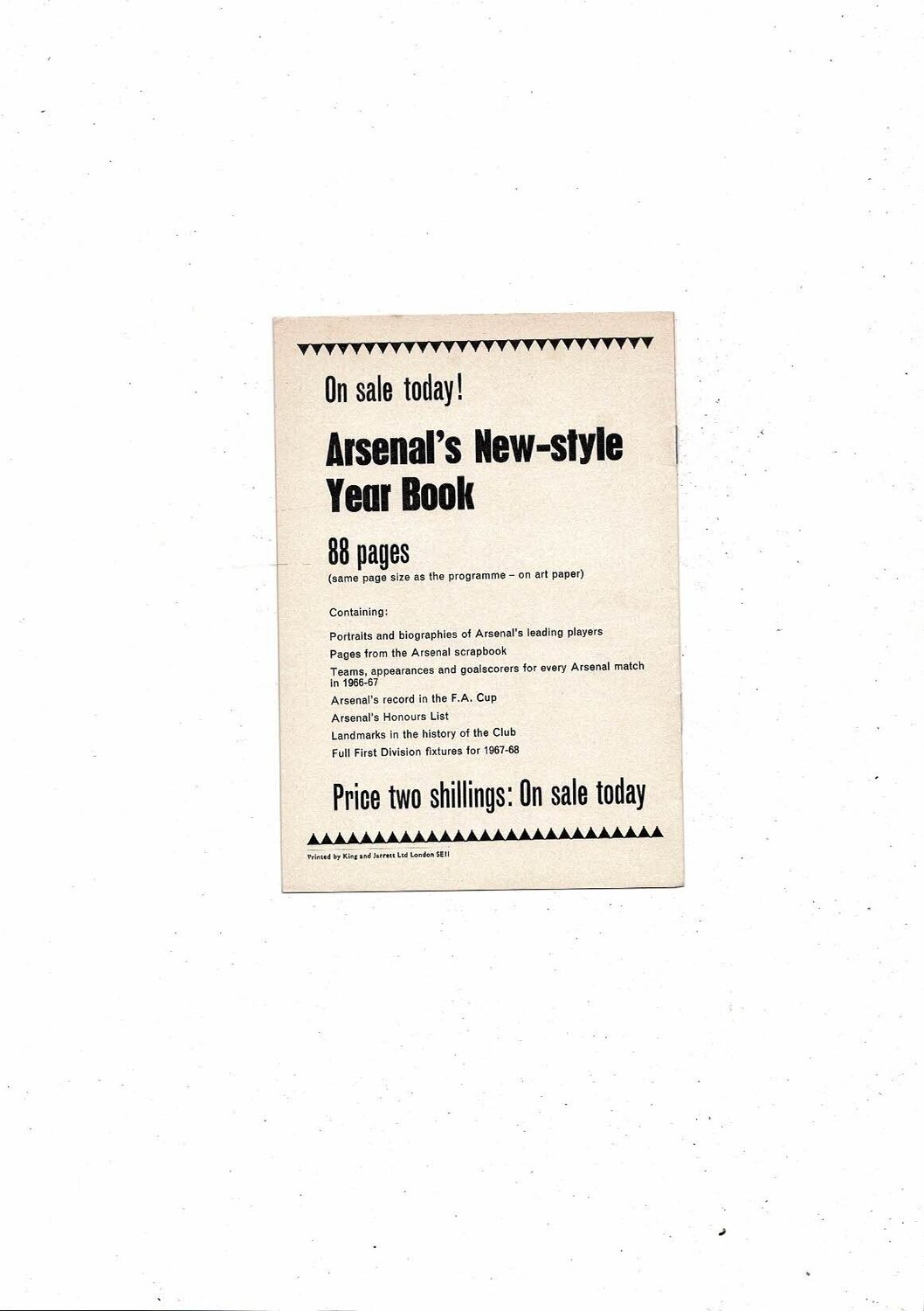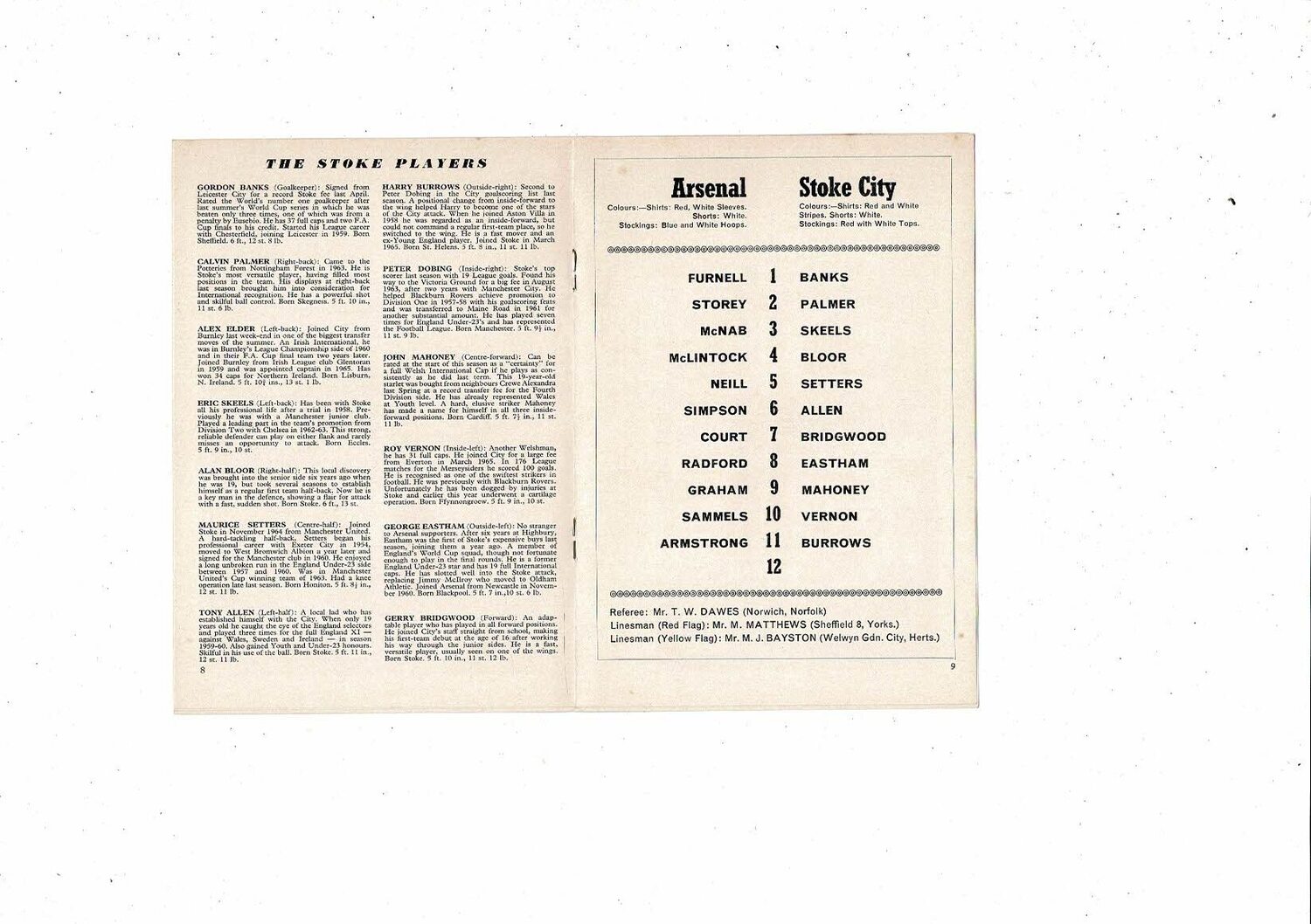 1967/68 Arsenal v Stoke City Football Programme