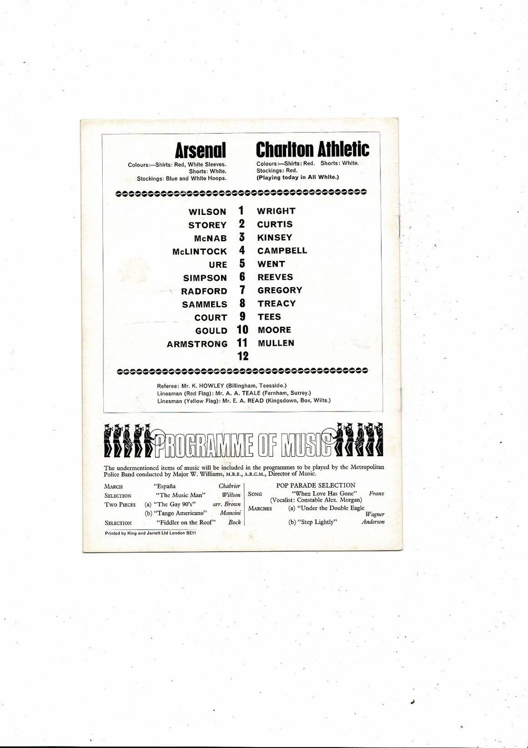 1968/69 Arsenal v Charlton Athletic FA Cup Football Programme