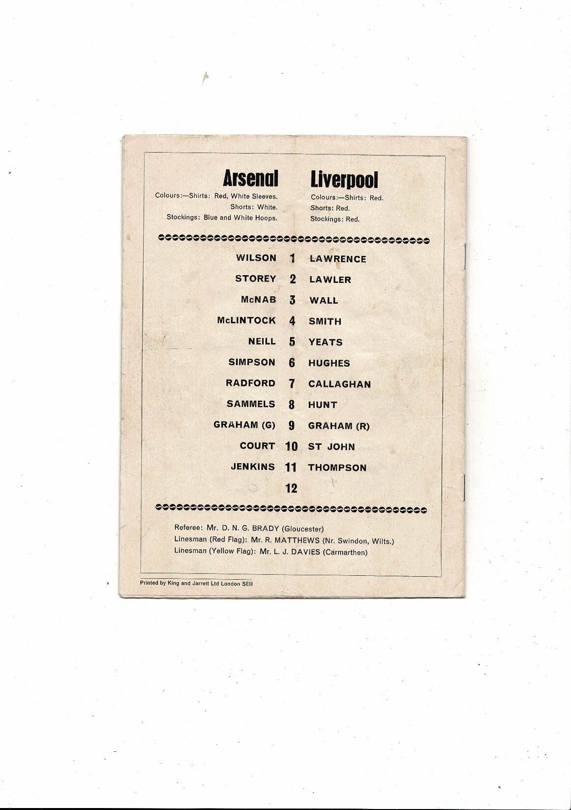 1968/69 Arsenal v Liverpool Football Programme