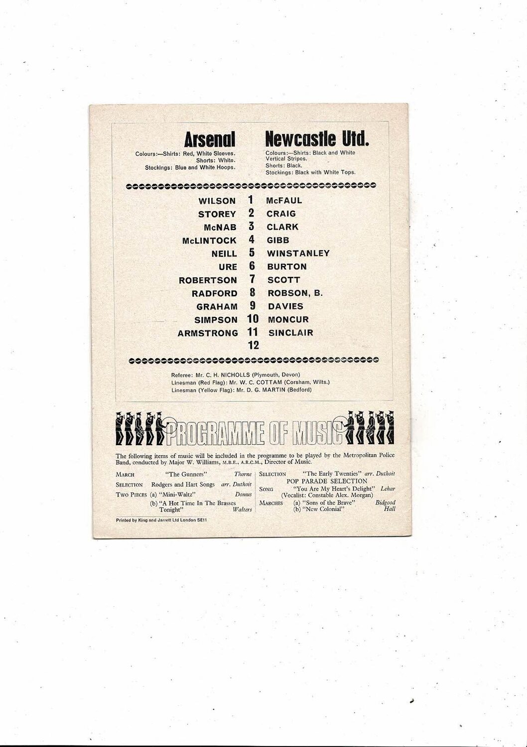1968/69 Arsenal v Newcastle United Football Programme