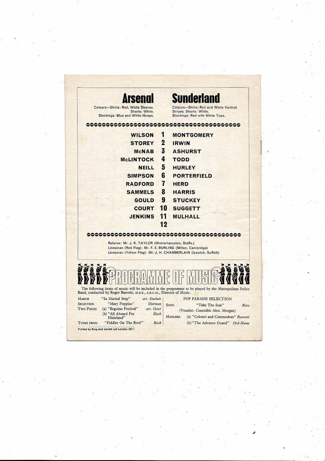 1968/69 Arsenal v Sunderland League Cup Football Programme