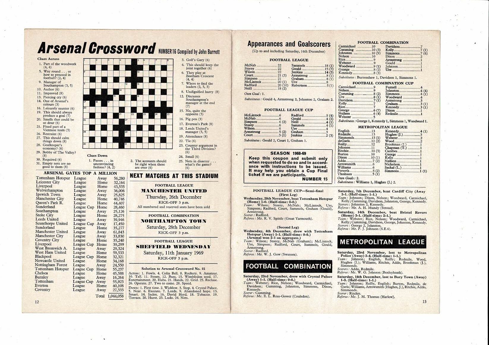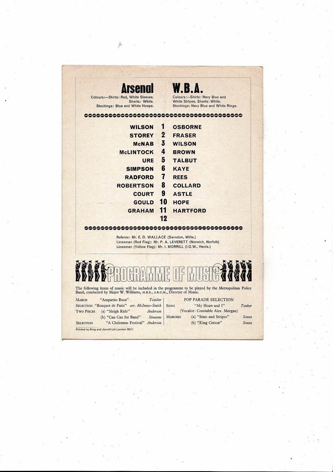 1968/69 Arsenal v West Bromwich Albion Football Programme