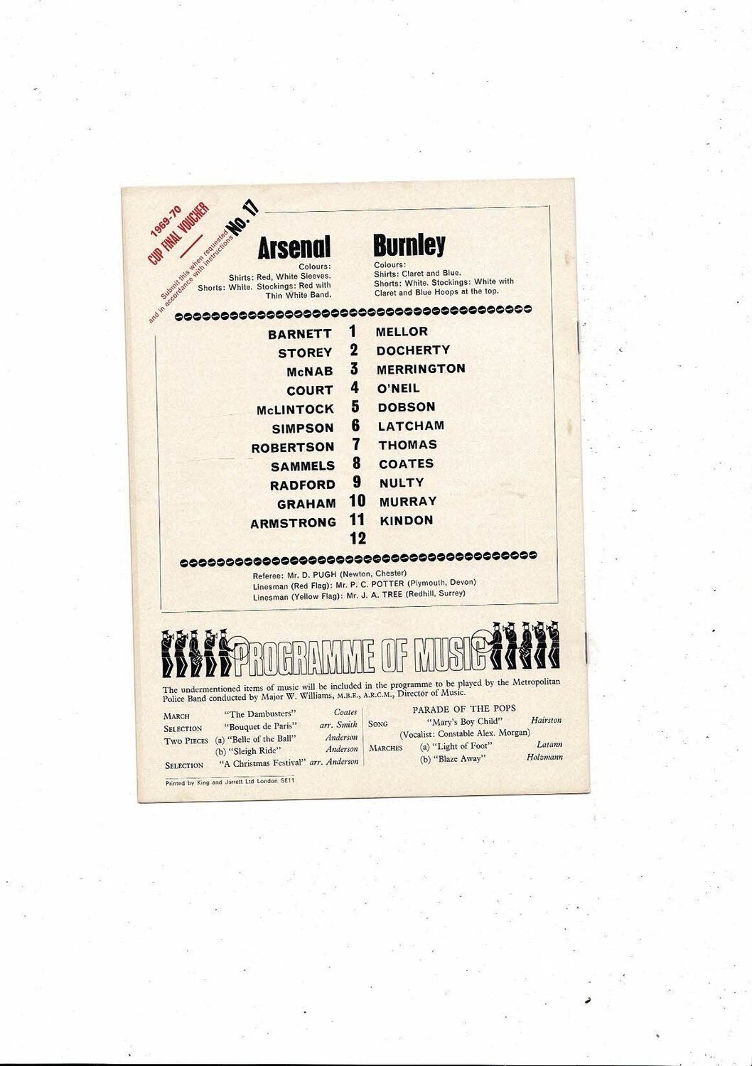 1969/70 Arsenal v Burnley Football Programme