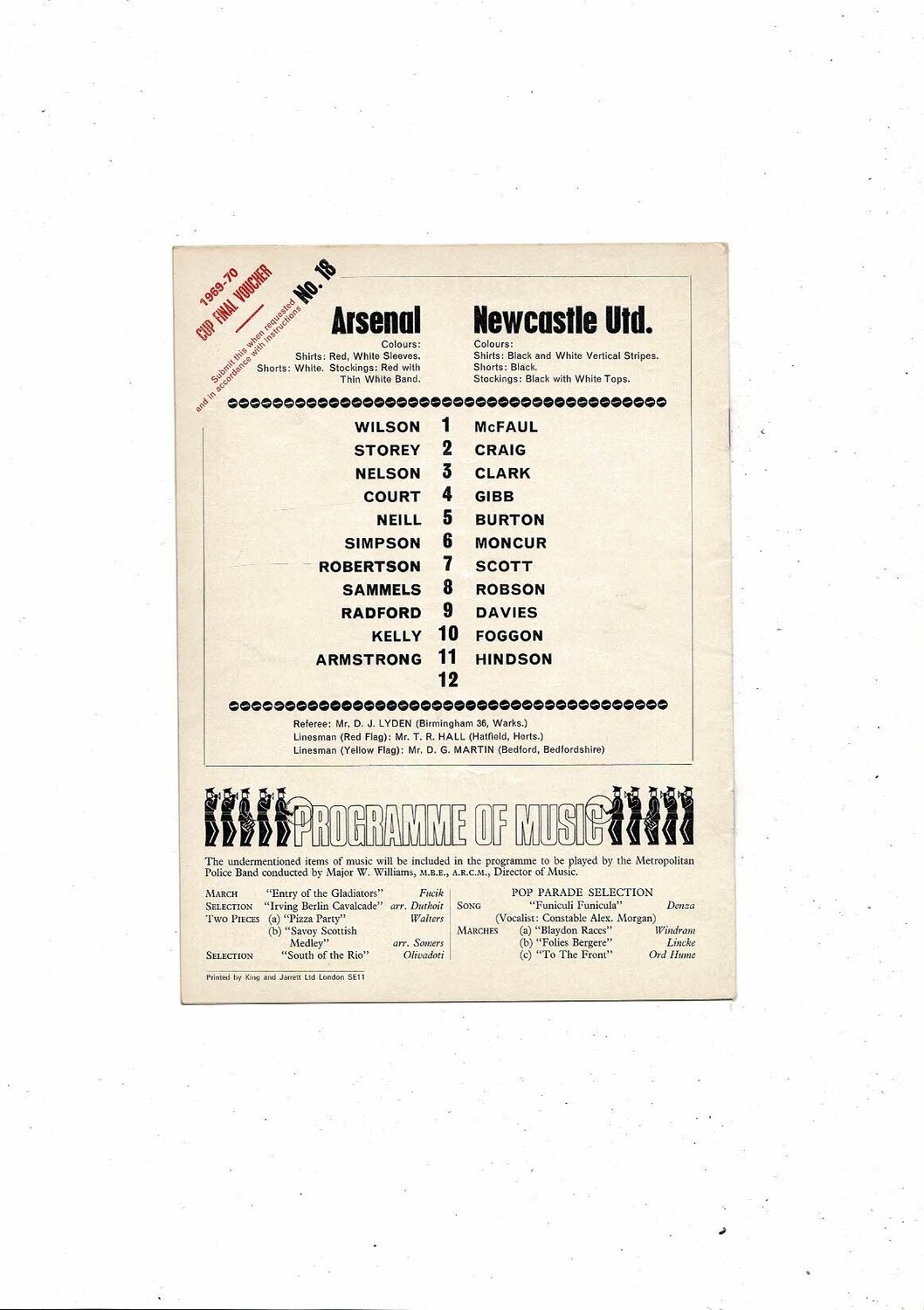 1969/70 Arsenal v Newcastle United Football Programme
