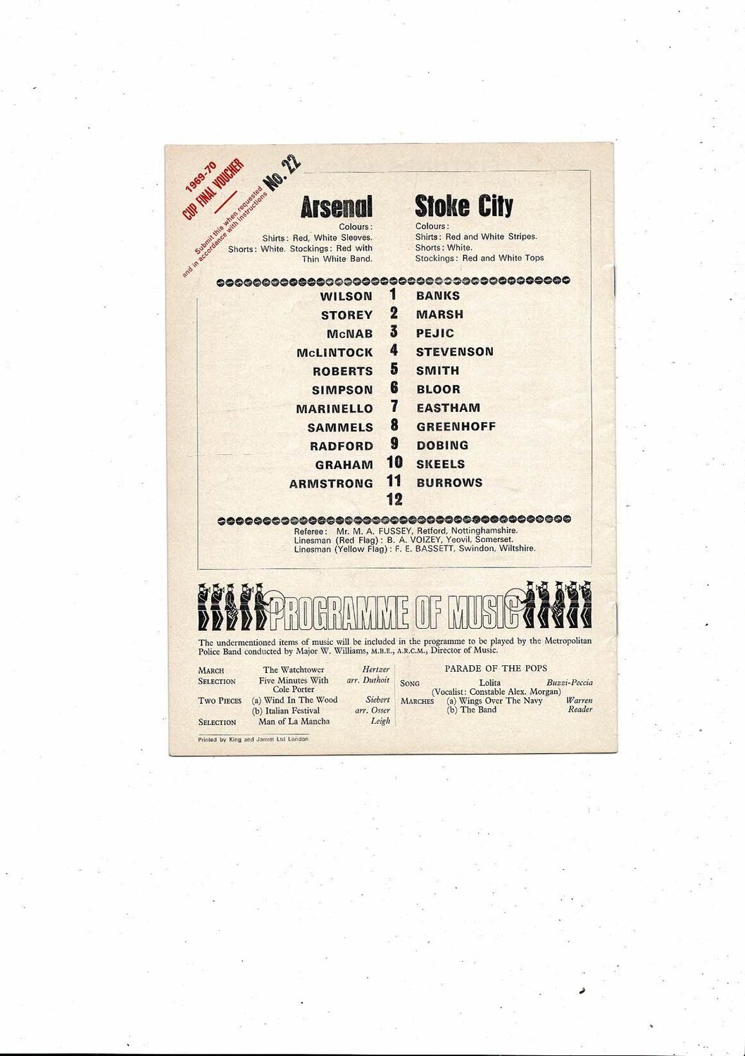 1969/70 Arsenal v Stoke City Football Programme