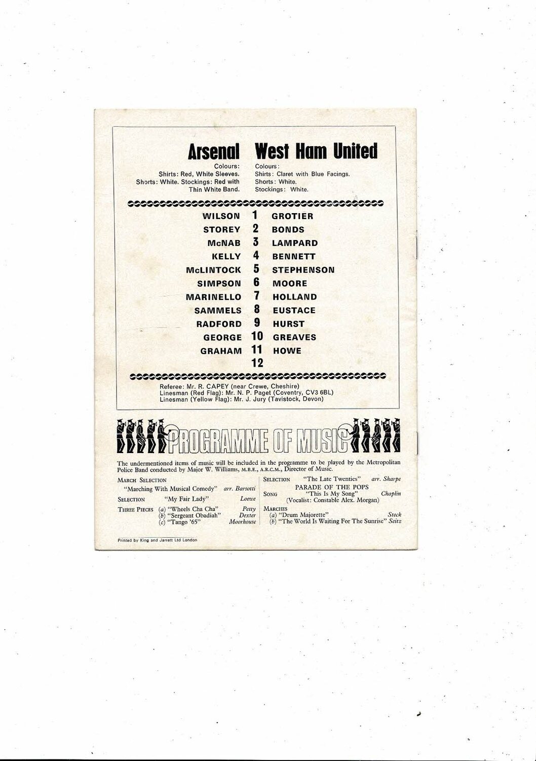 1969/70 Arsenal v West Ham United Football Programme