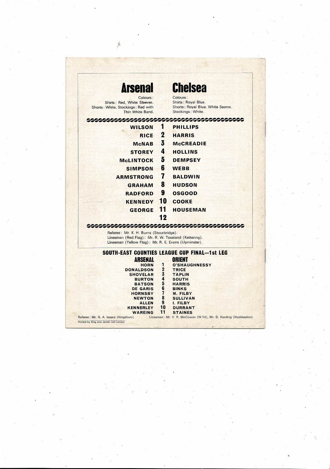 1970/71 Arsenal v Chelsea Football Programme