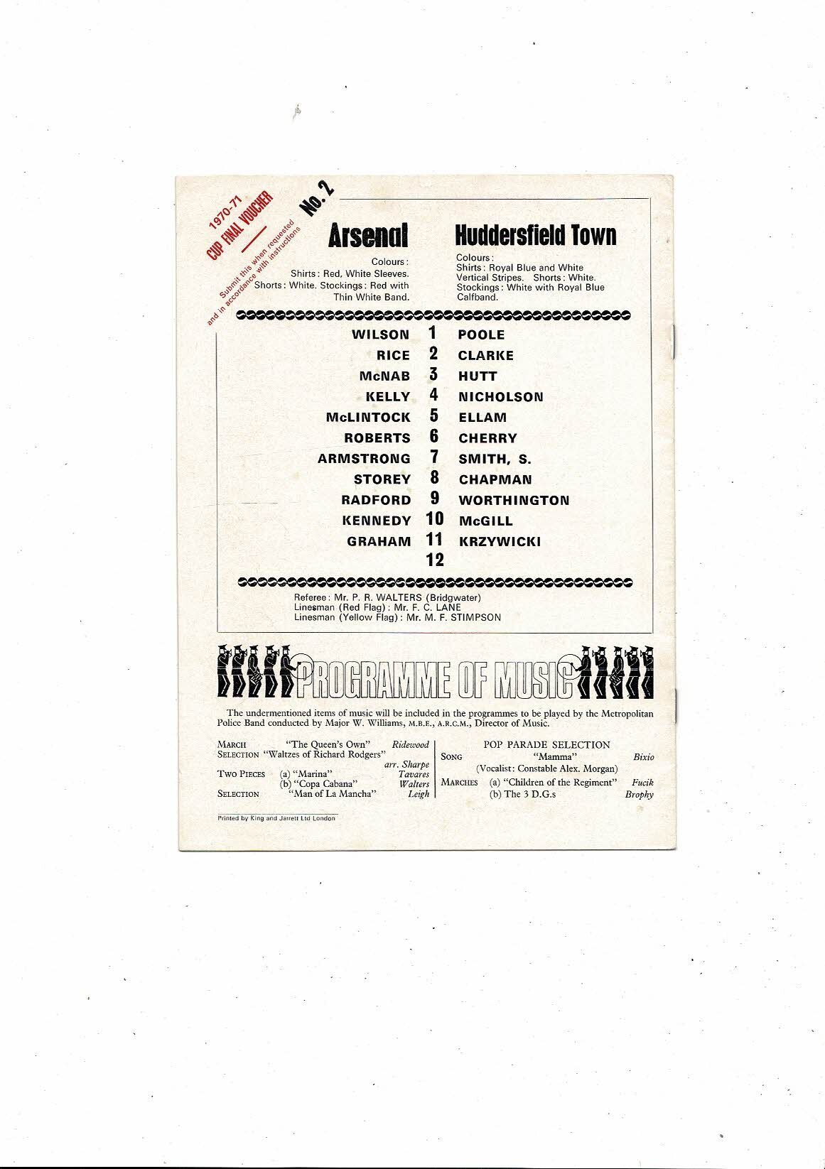 1970/71 Arsenal v Huddersfield Town Football Programme