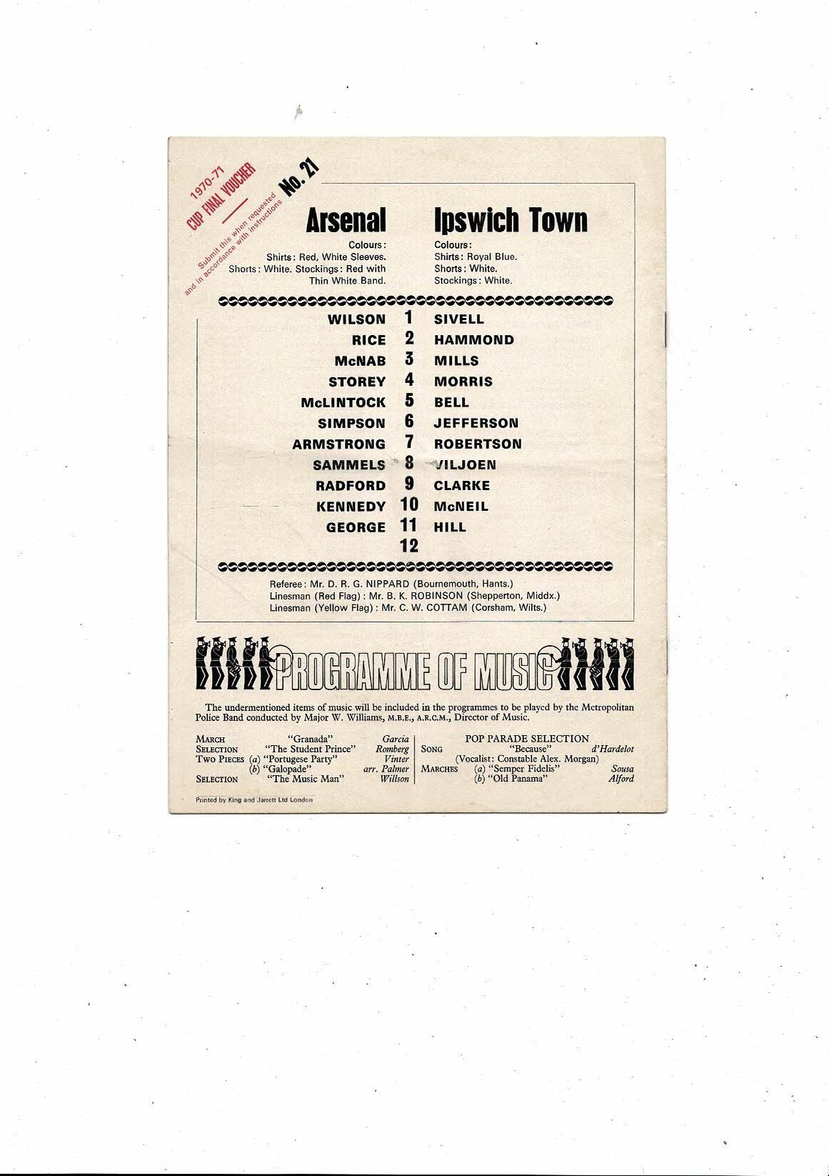 1970/71 Arsenal v Ipswich Town Football Programme