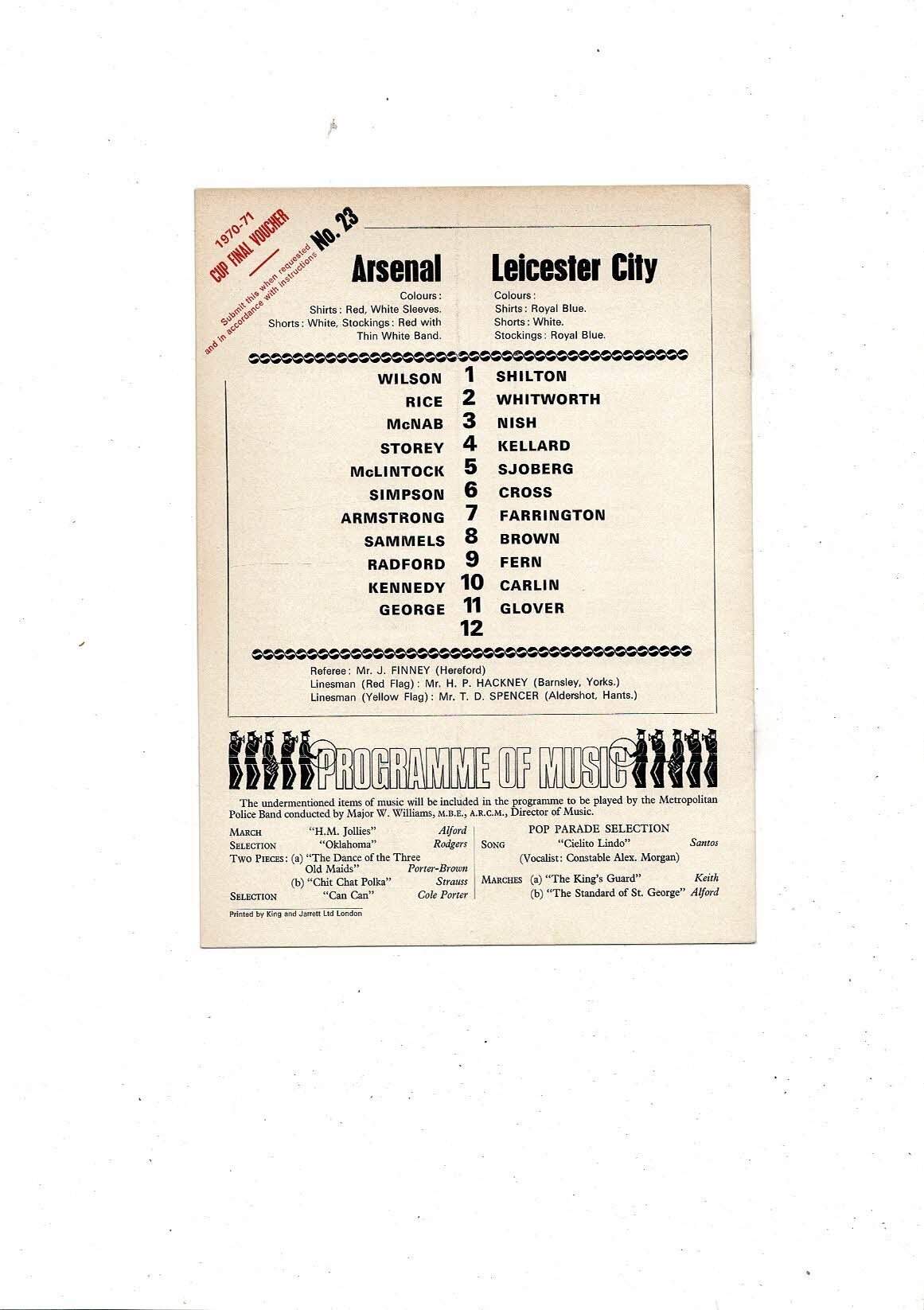 1970/71 Arsenal v Leicester City FA Cup Replay Football Programme