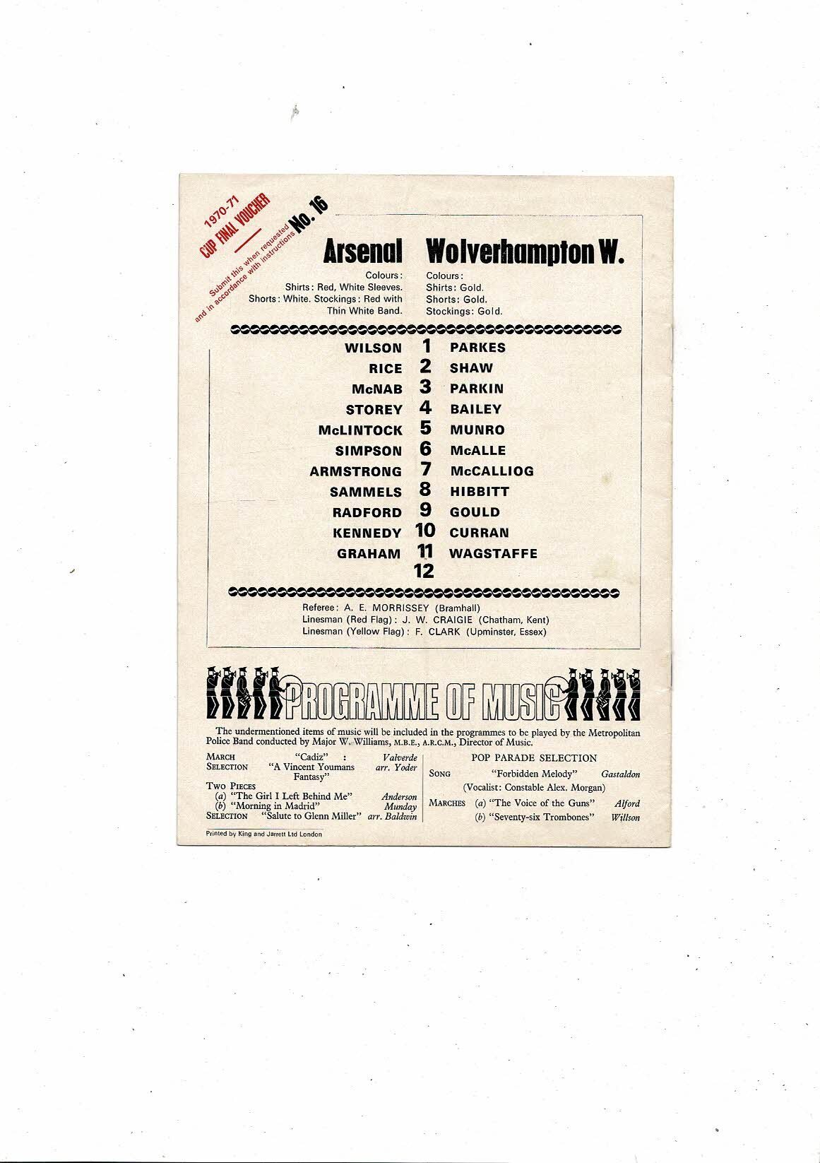 1970/71 Arsenal v Wolves Football Programme