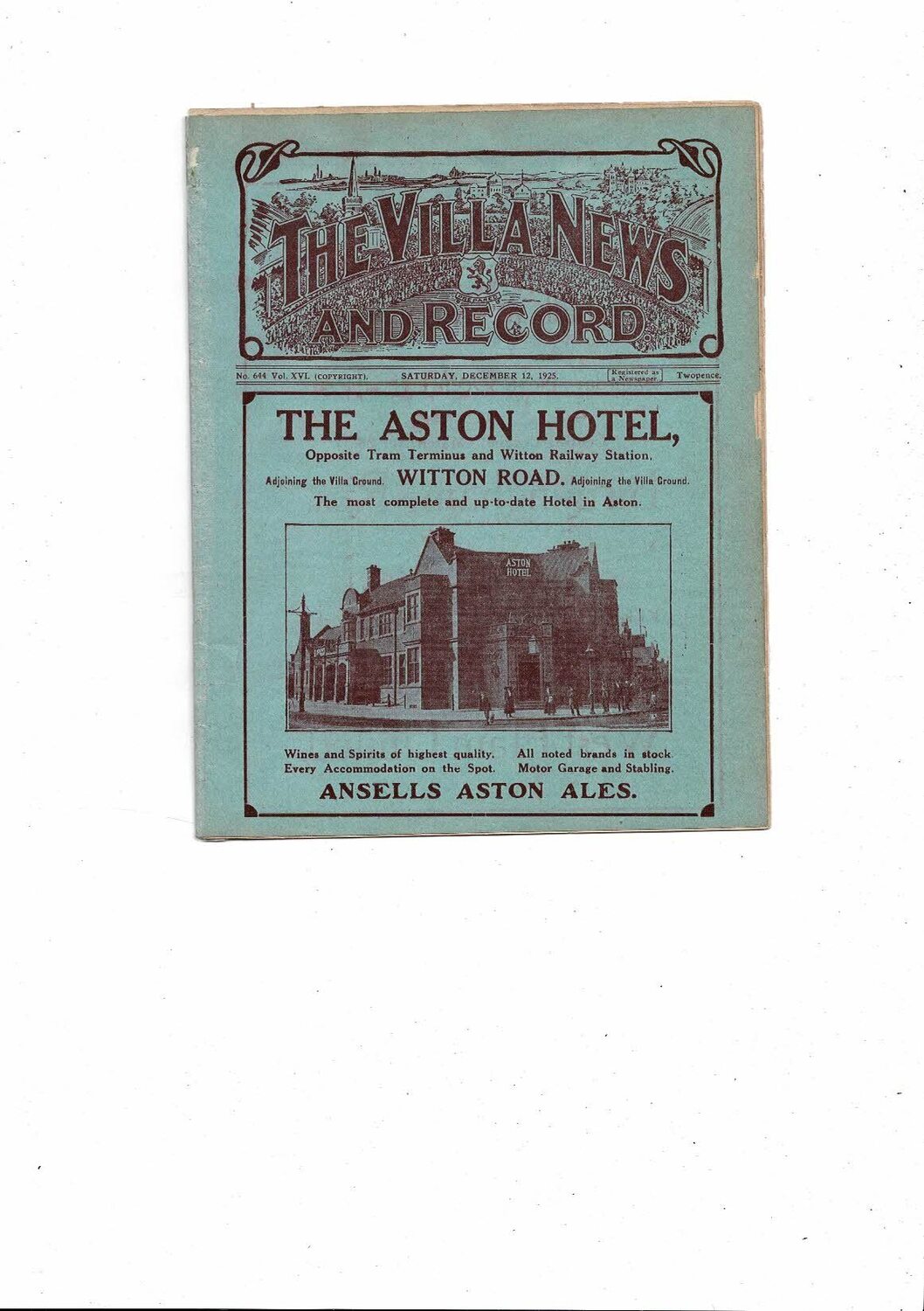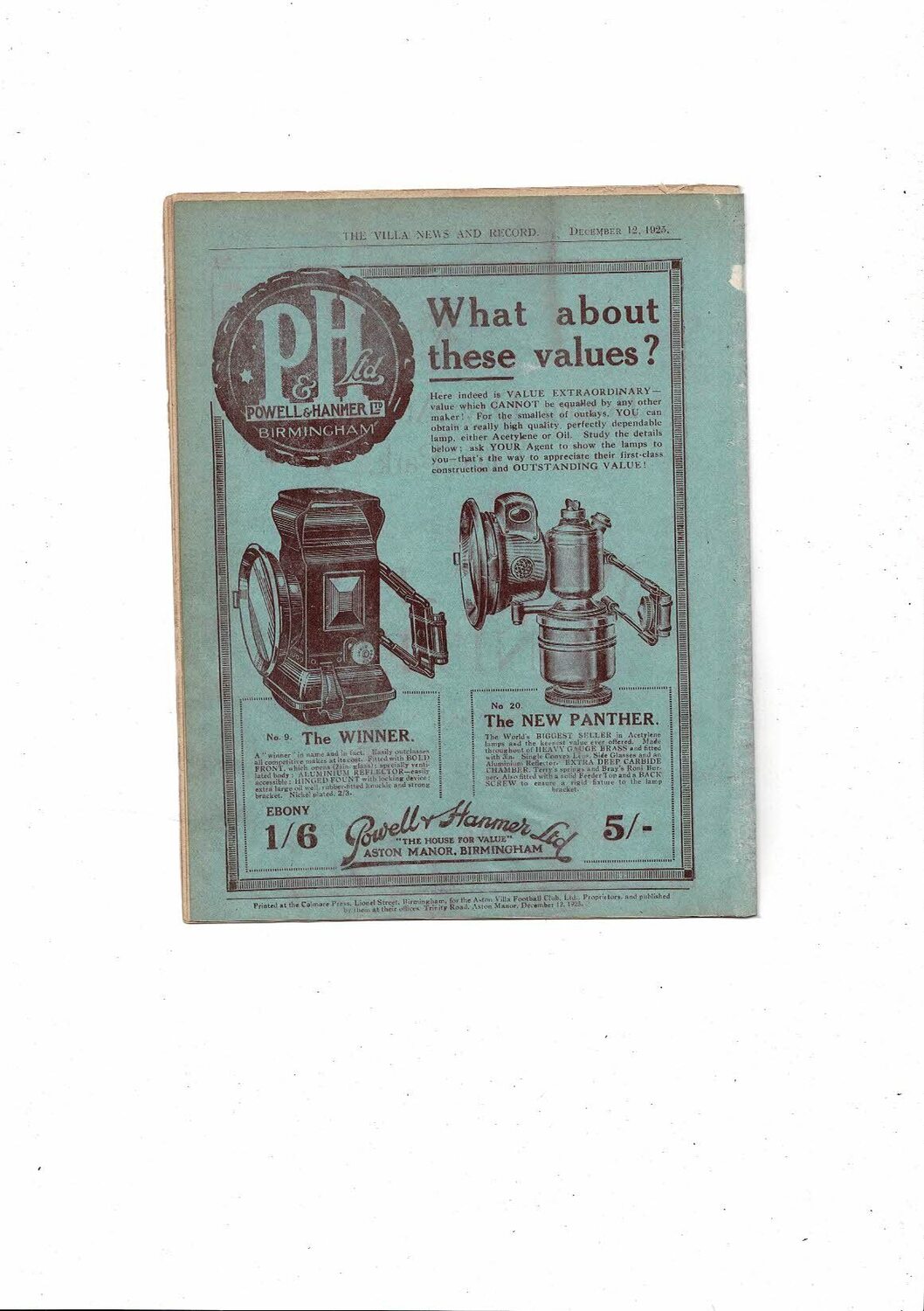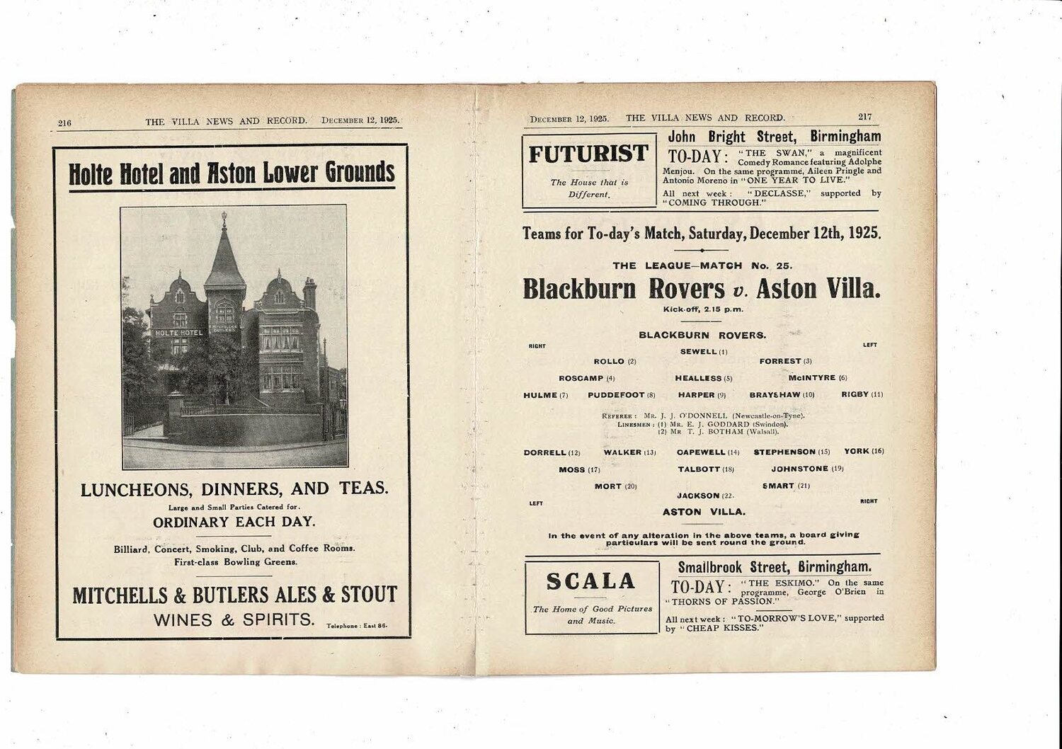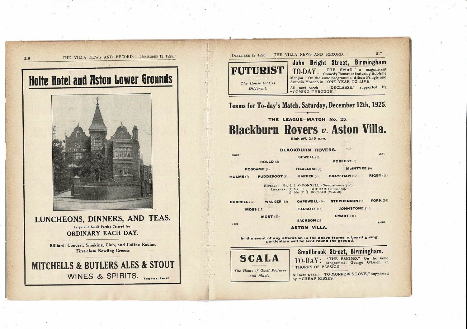 1925/26 Aston Villa v Blackburn Rovers ex bound volume Football Programme