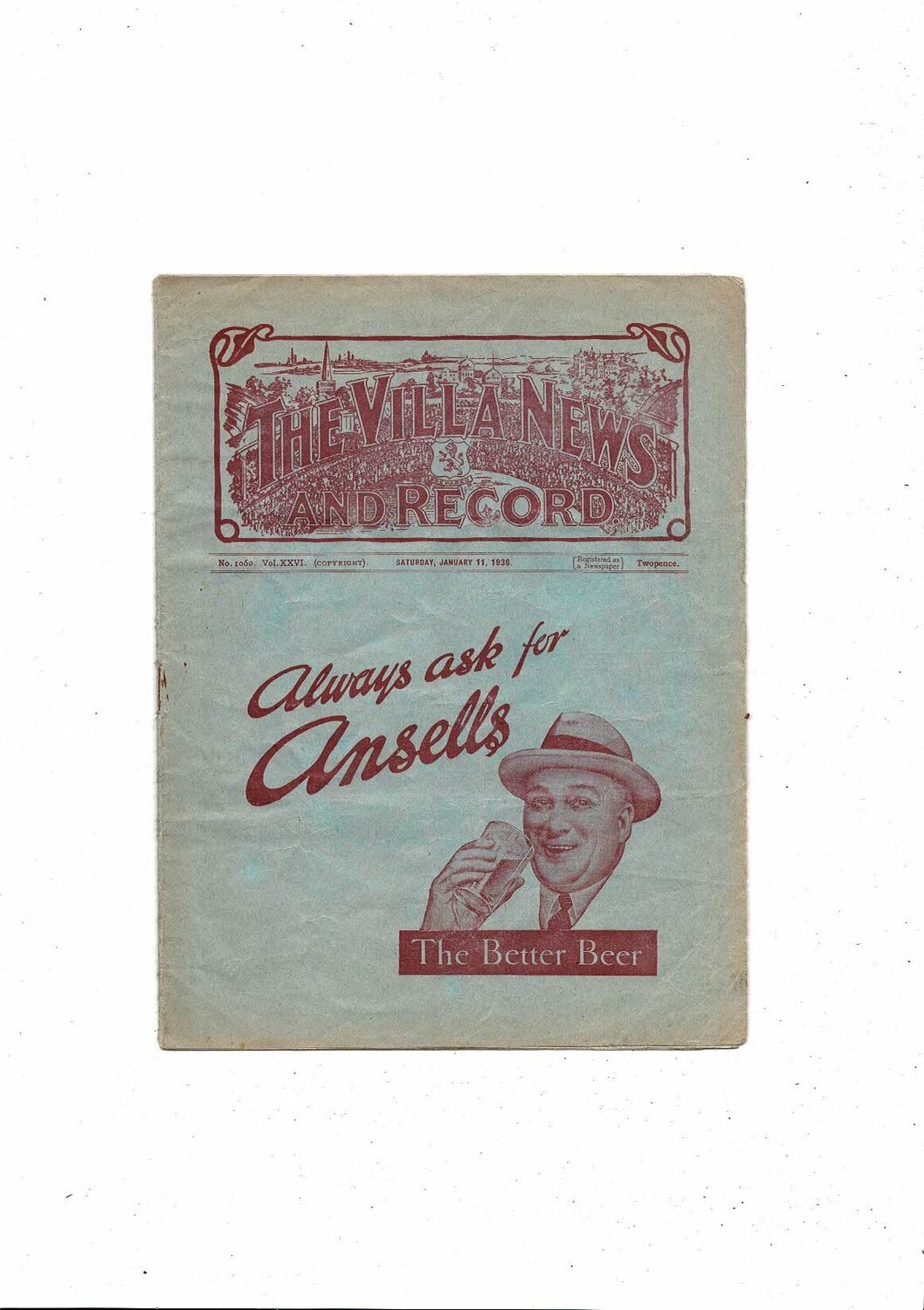 1935/36 Aston Villa v Huddersfield Town FA Cup Football Programme