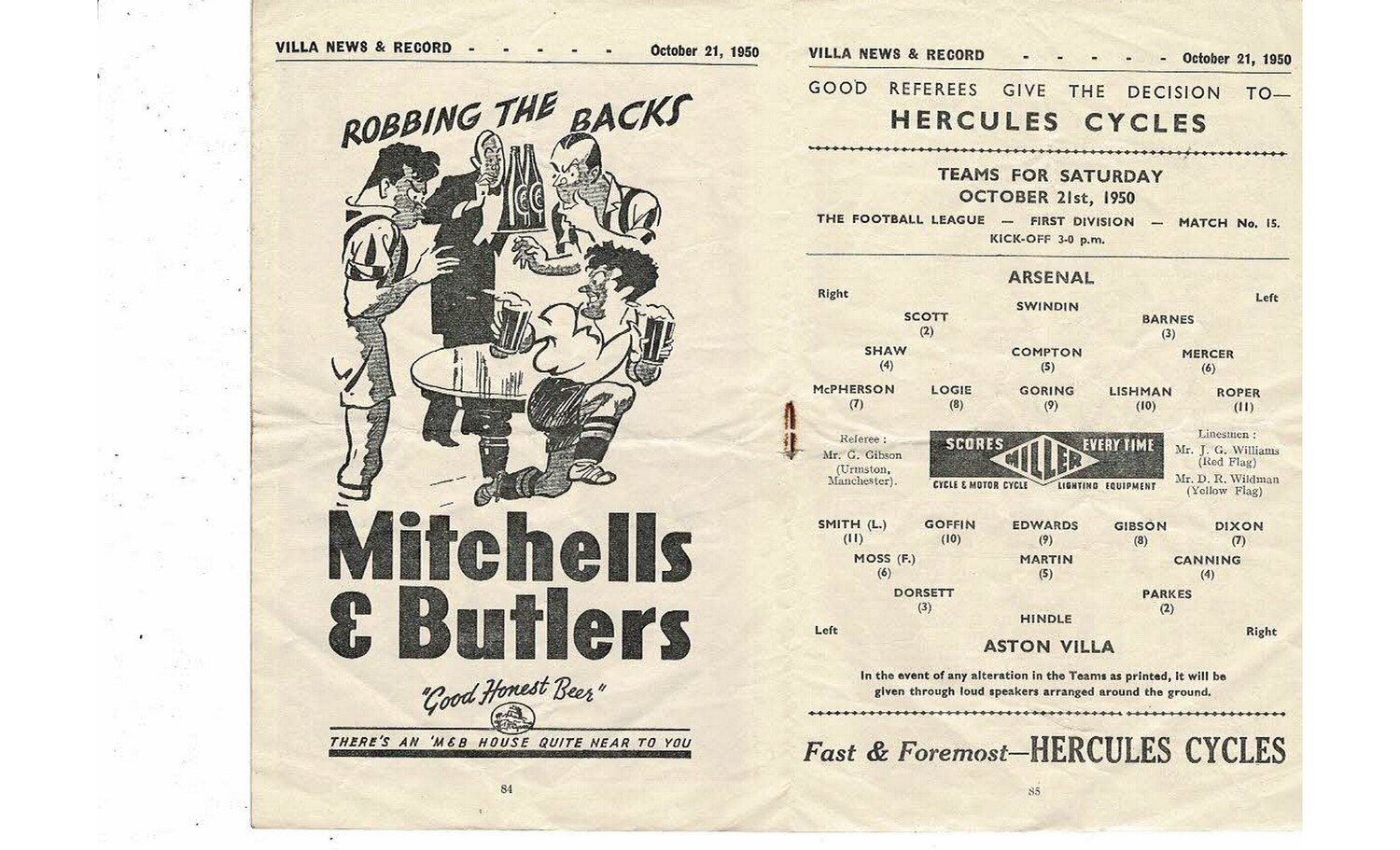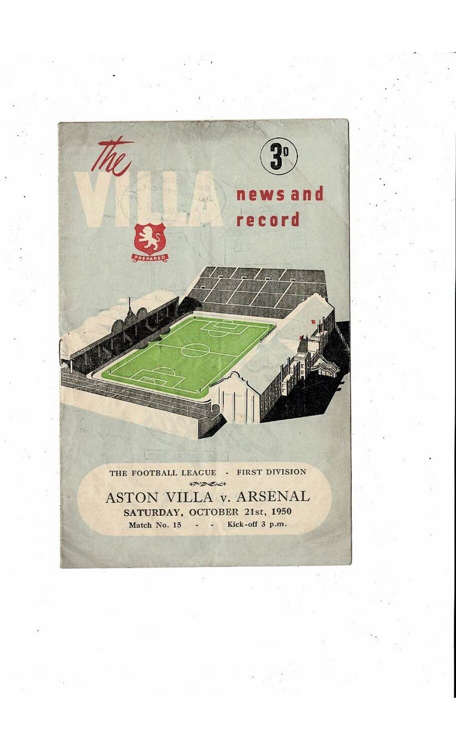 1950/51 Aston Villa v Arsenal Football Programme