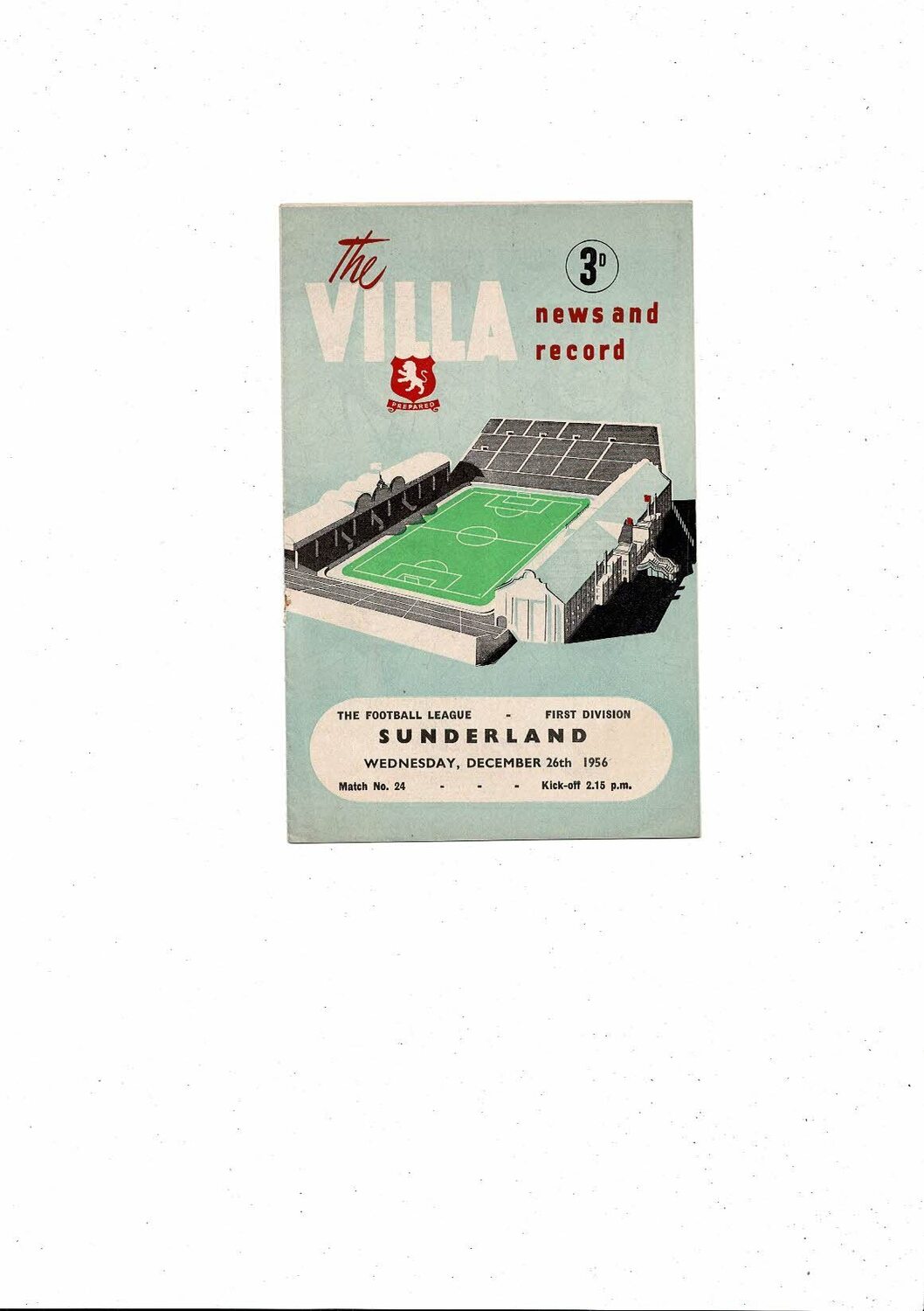 1956/57 Aston Villa v Sunderland Football Programme Dec