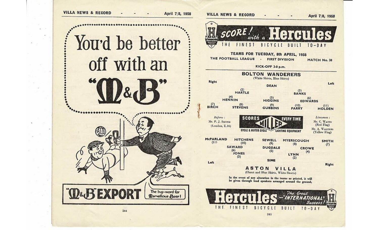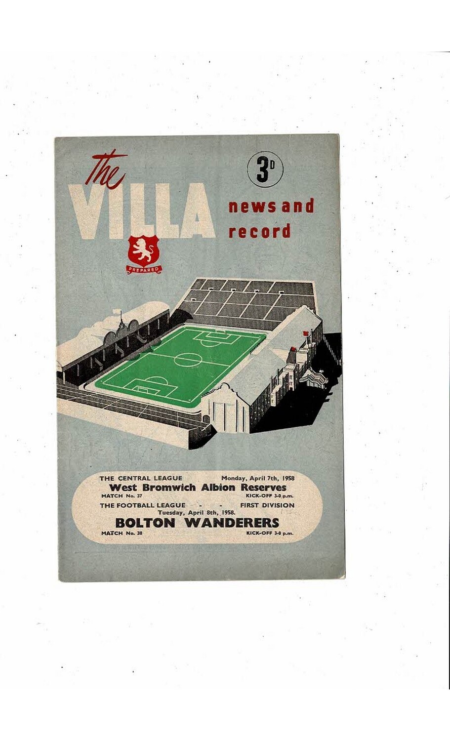 1957/58 Aston Villa v Bolton Wanderers Football Programme