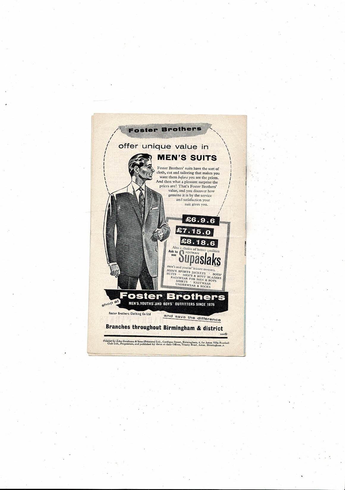 1960/61 Aston Villa v Arsenal Football Programme
