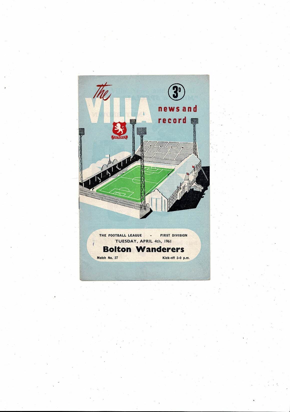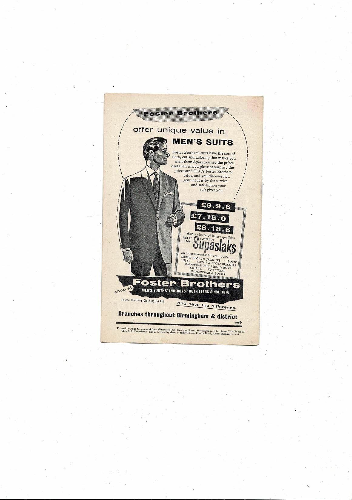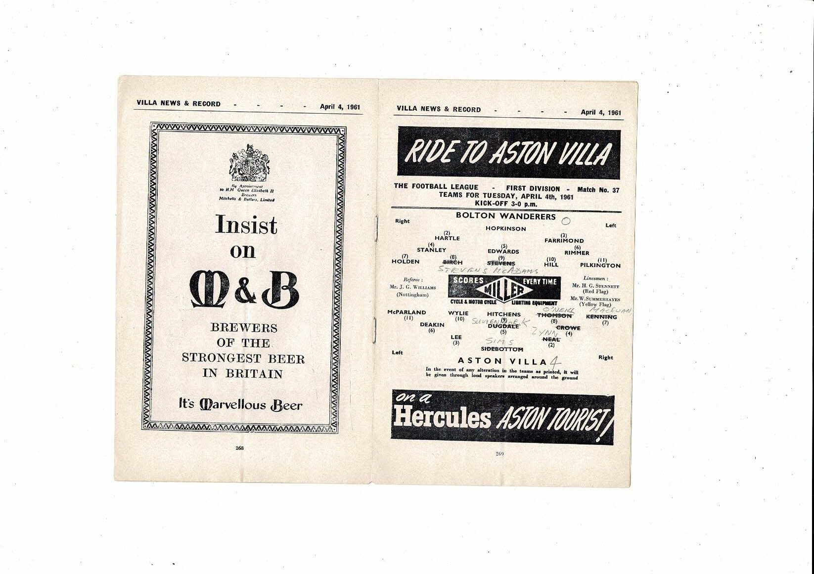 1960/61 Aston Villa v Bolton Wanderers Football Programme