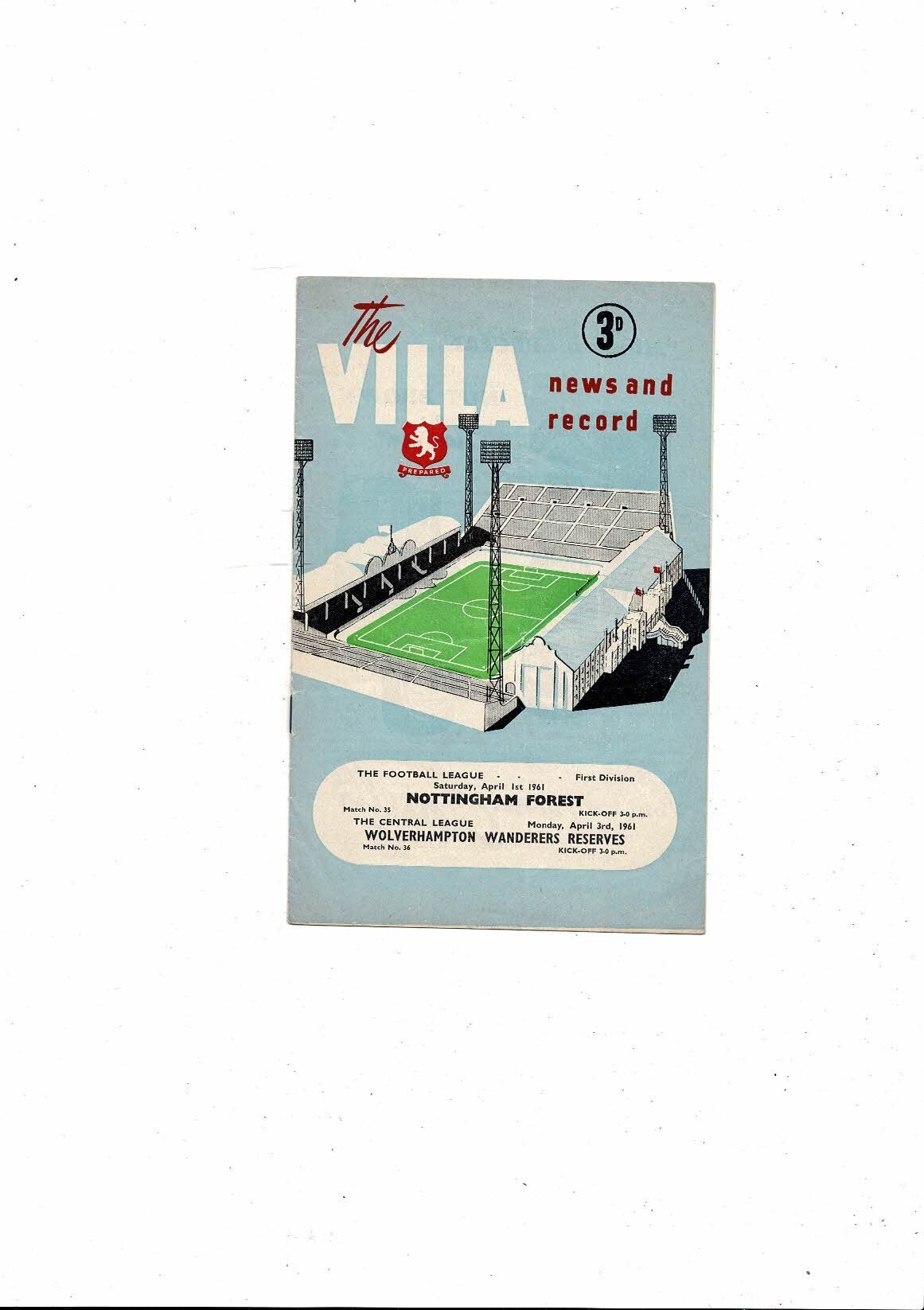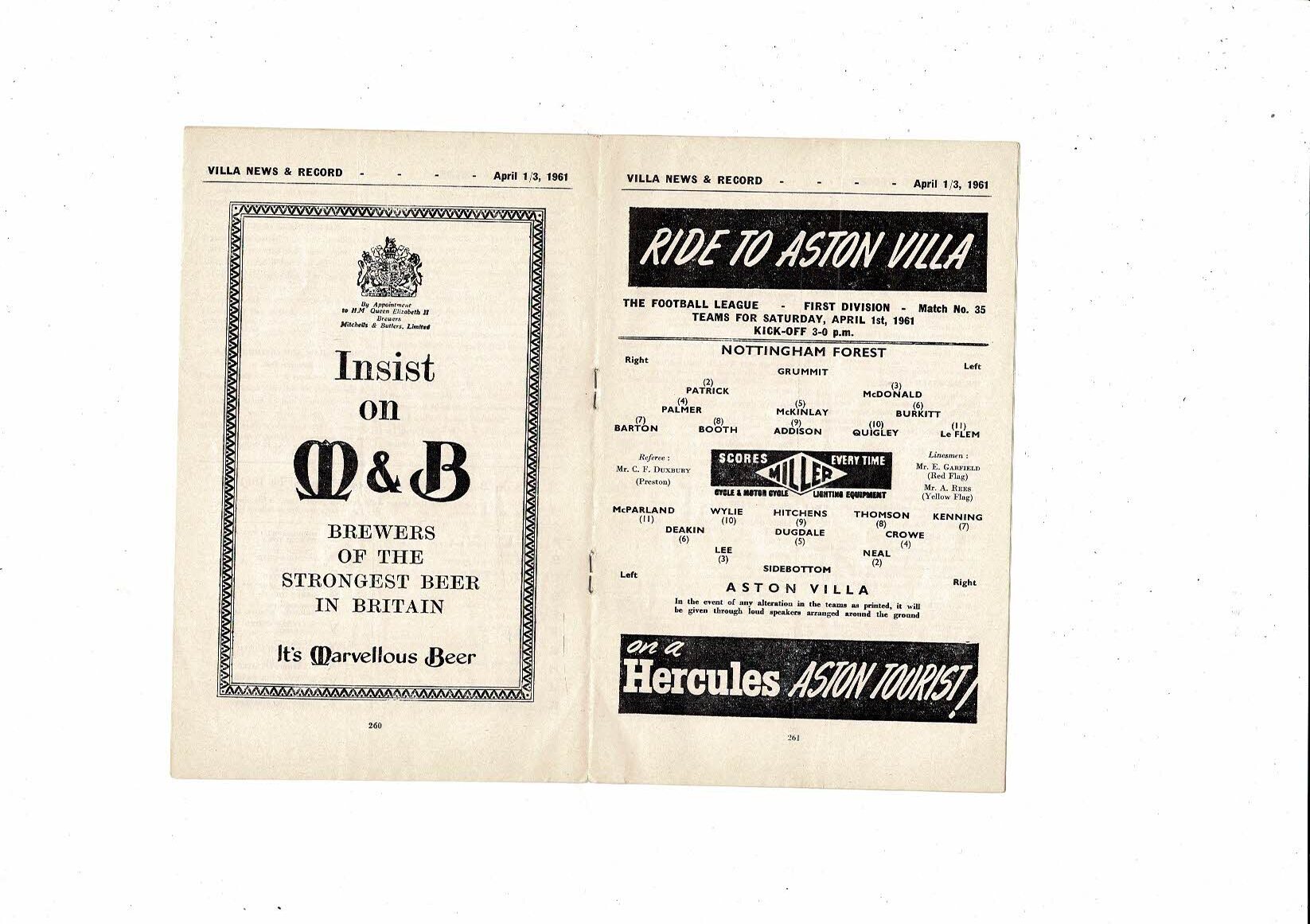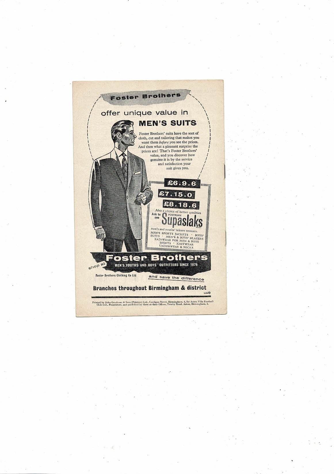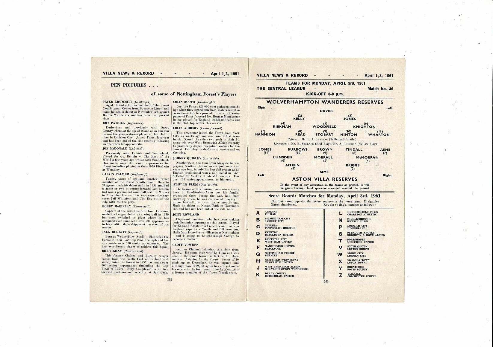 1960/61 Aston Villa v Nottingham Forest & Wolves Reserves Double Programme