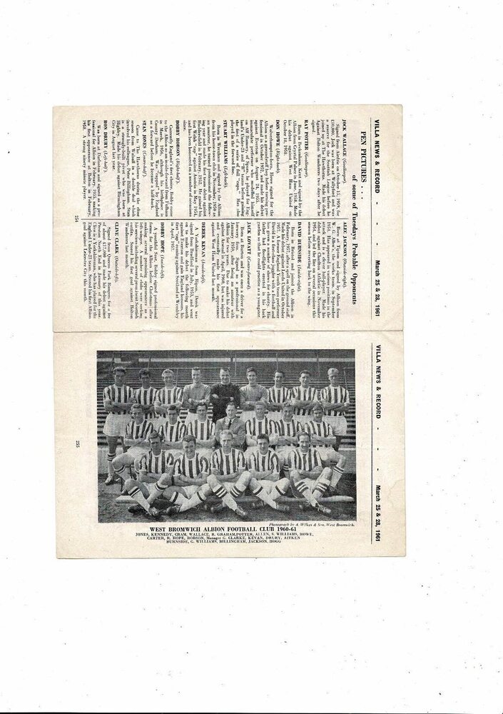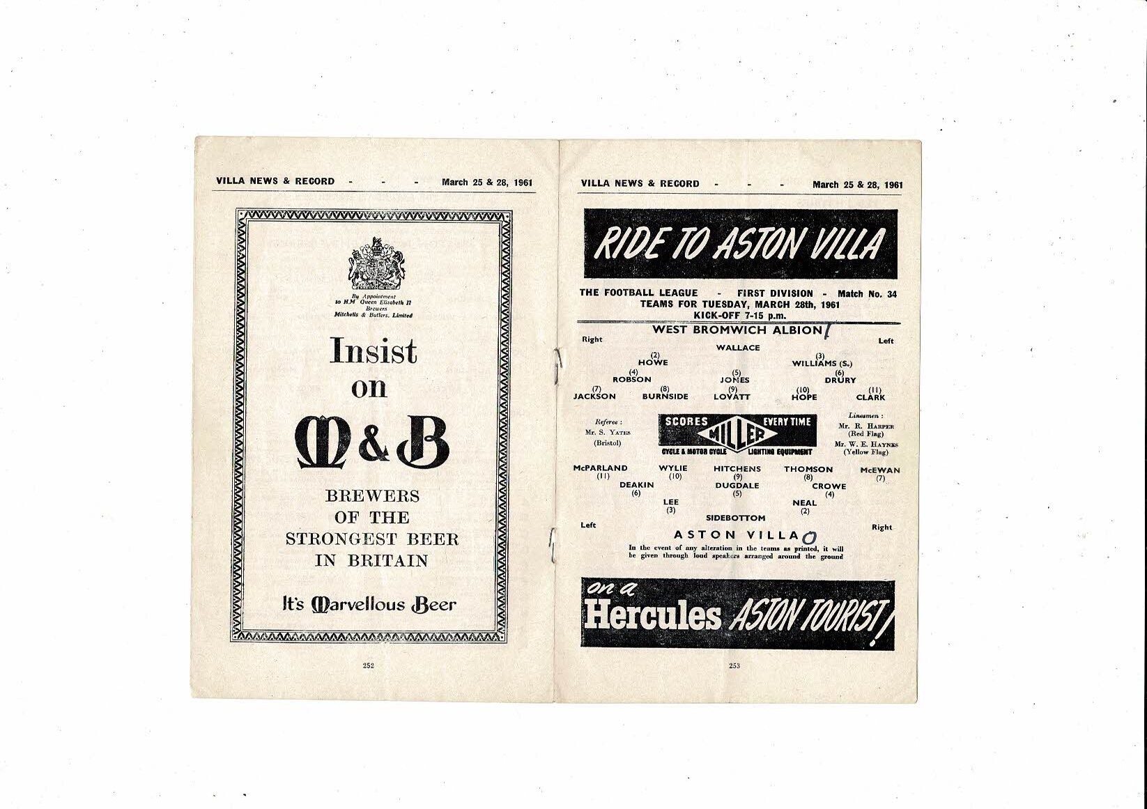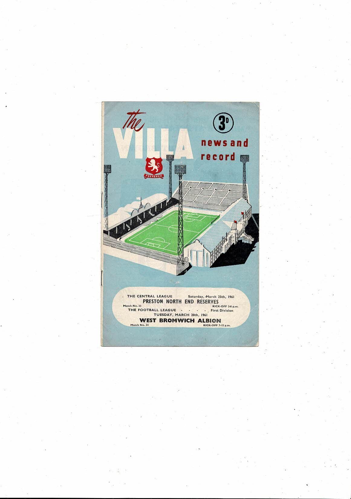 1960/61 Aston Villa v West Bromwich Albion & Preston Reserves Double Football Programme