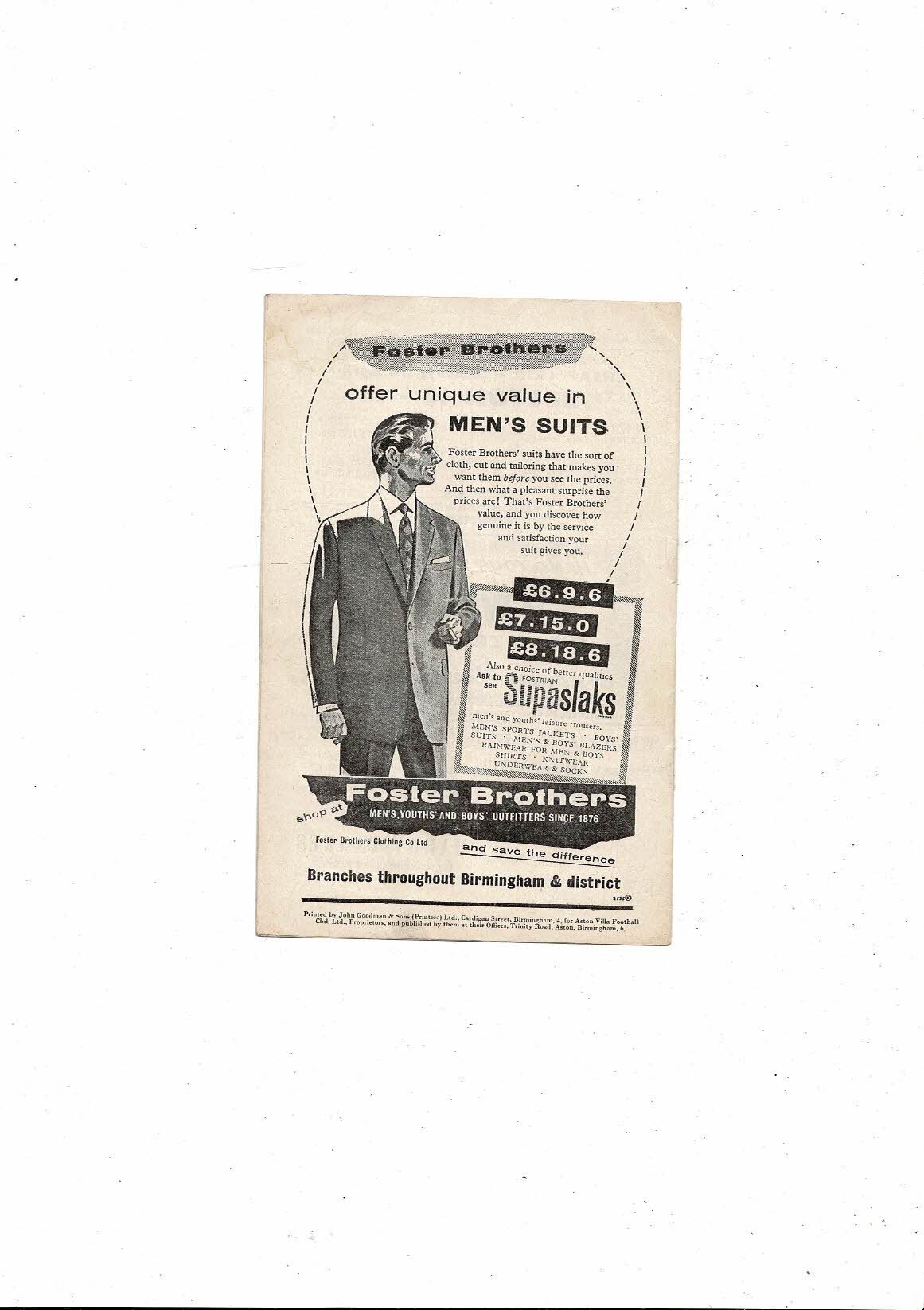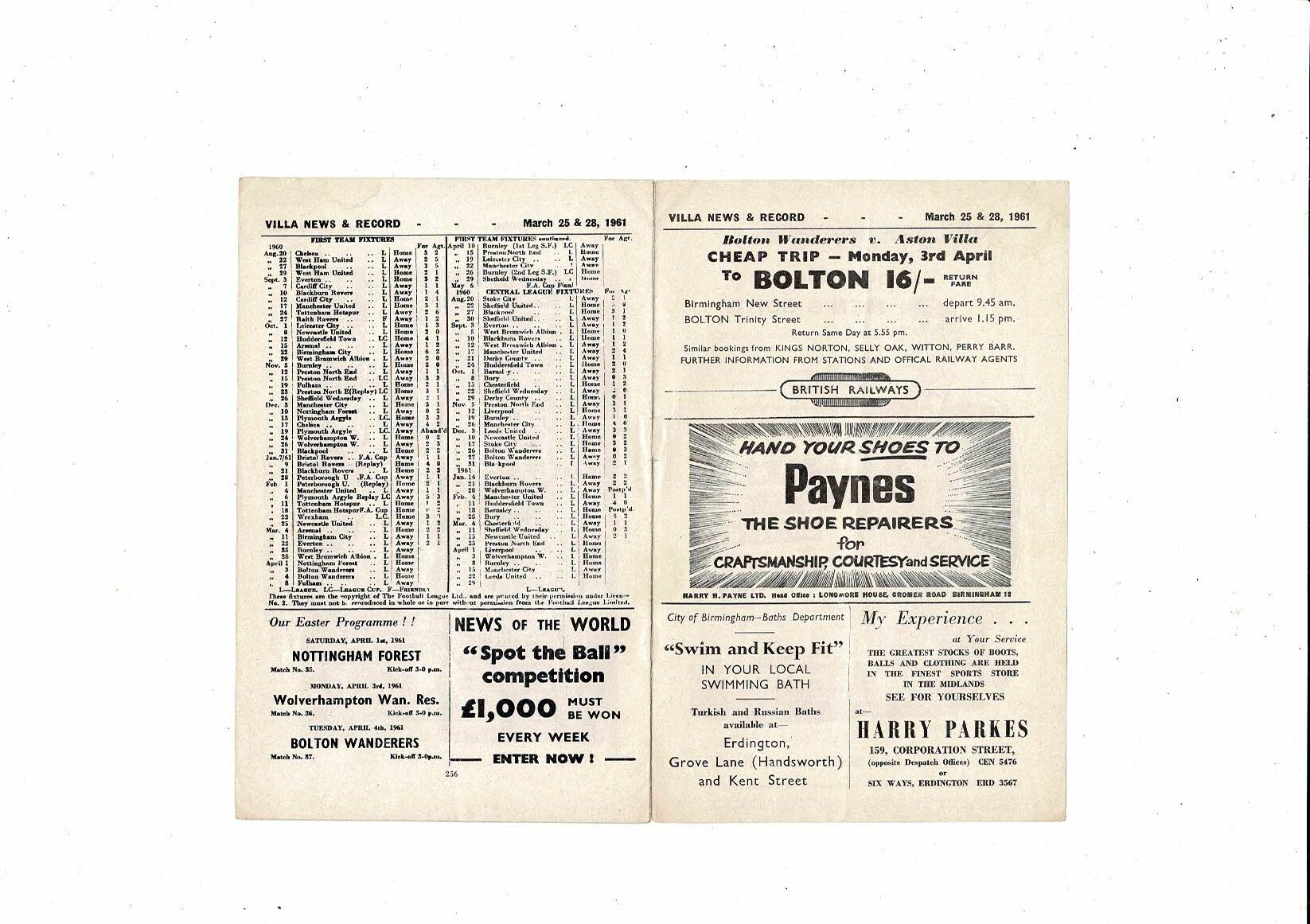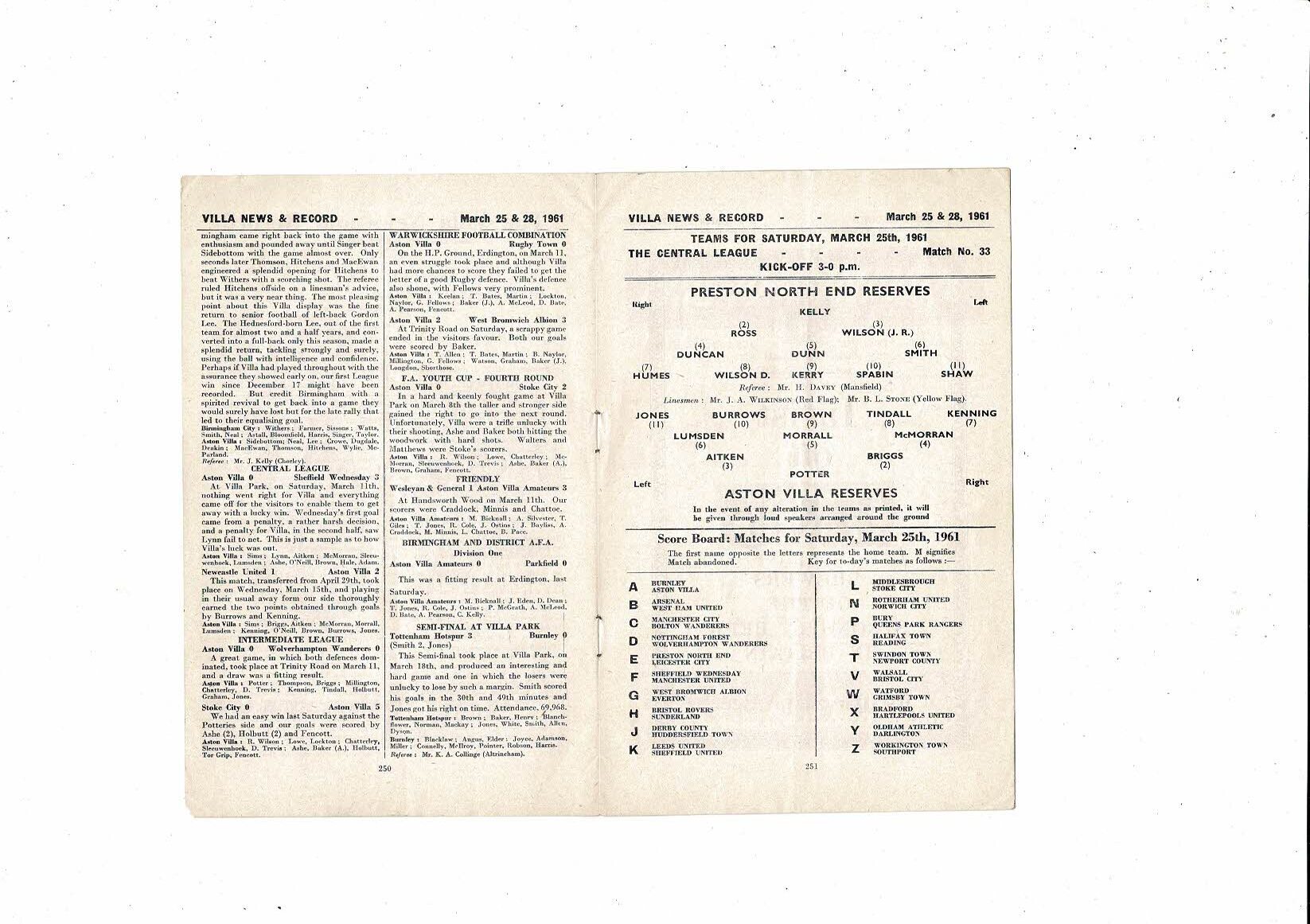 1960/61 Aston Villa v West Bromwich Albion & Preston Reserves Double Football Programme