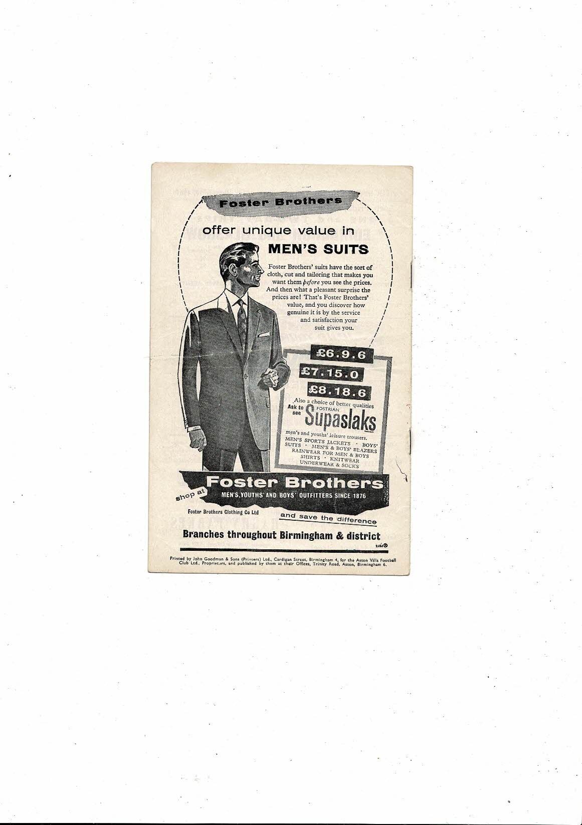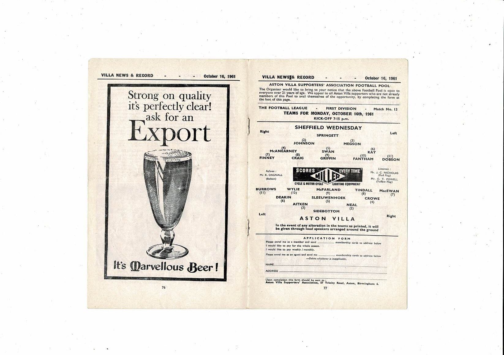 1961/62 Aston Villa v Sheffield Wednesday Football Programme