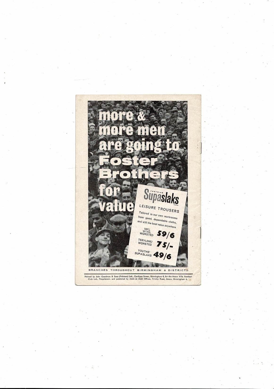 1963/64 Aston Villa v Blackburn Rovers & Stoke City Reserves Double Football Programme