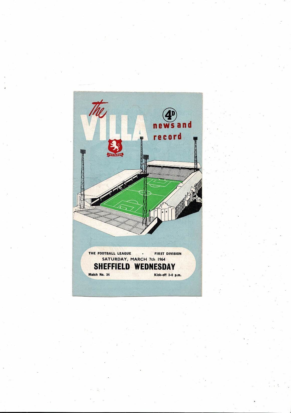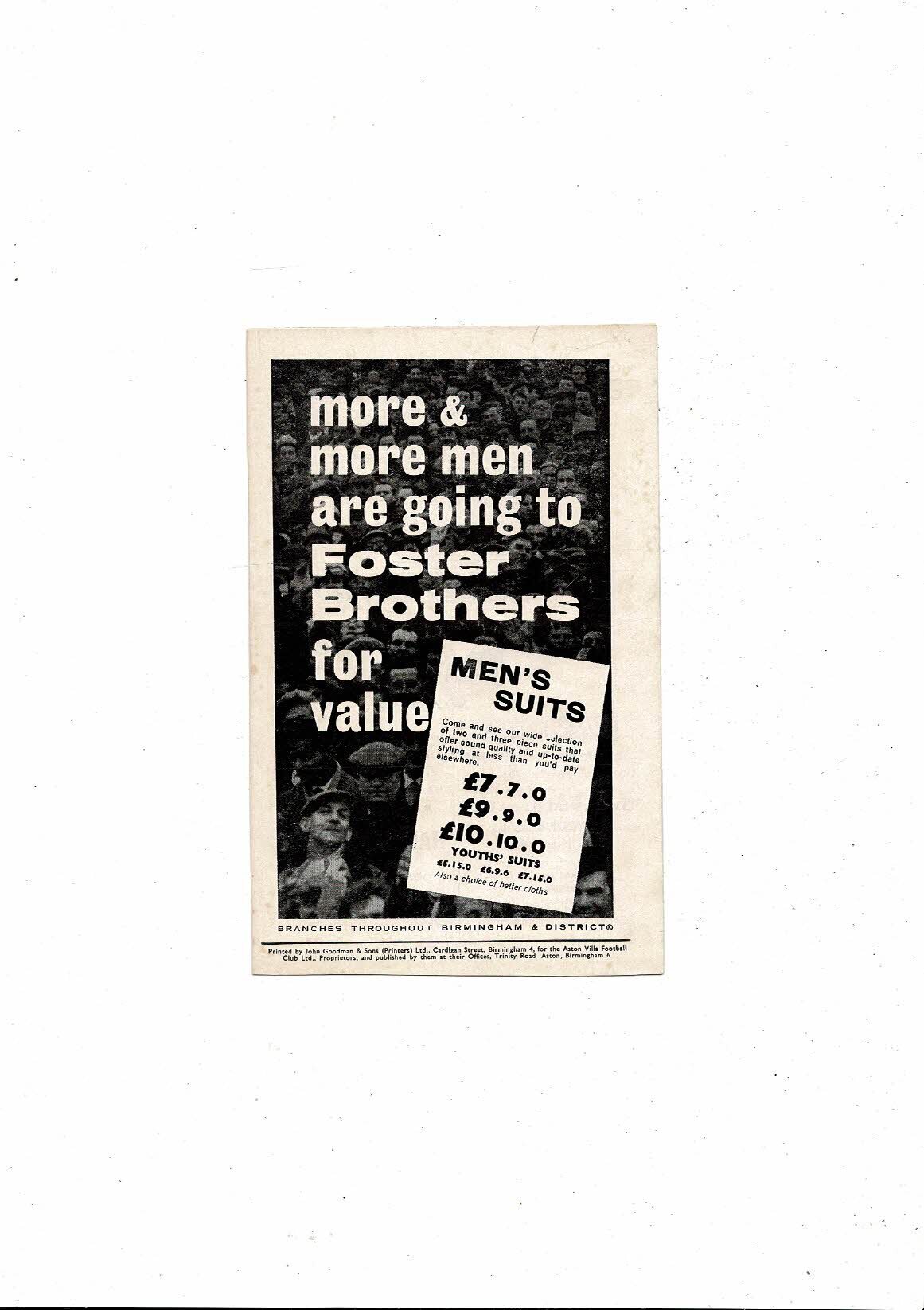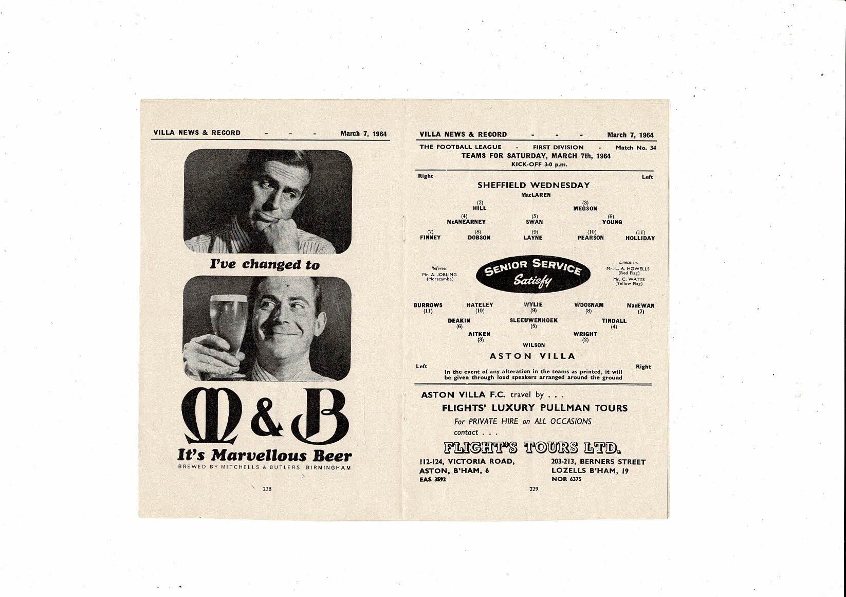 1963/64 Aston Villa v Sheffield Wednesday Football Programme