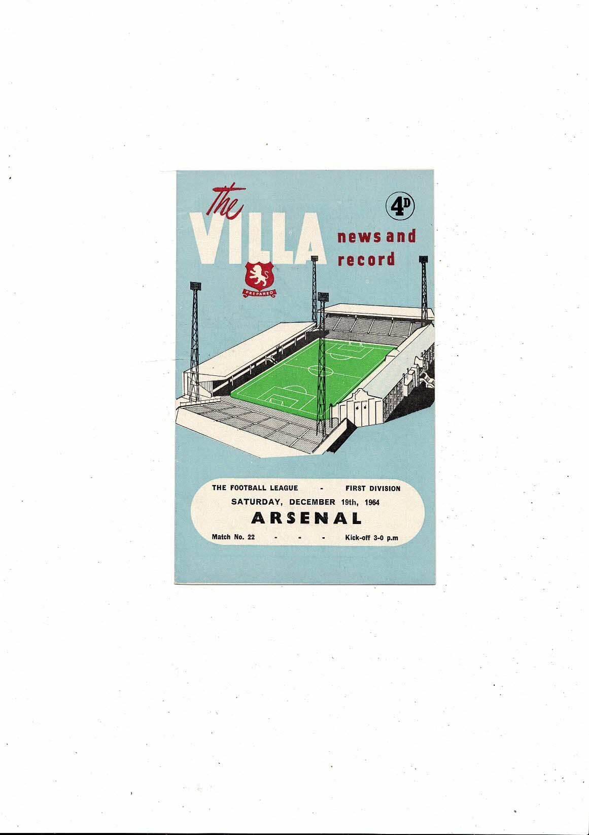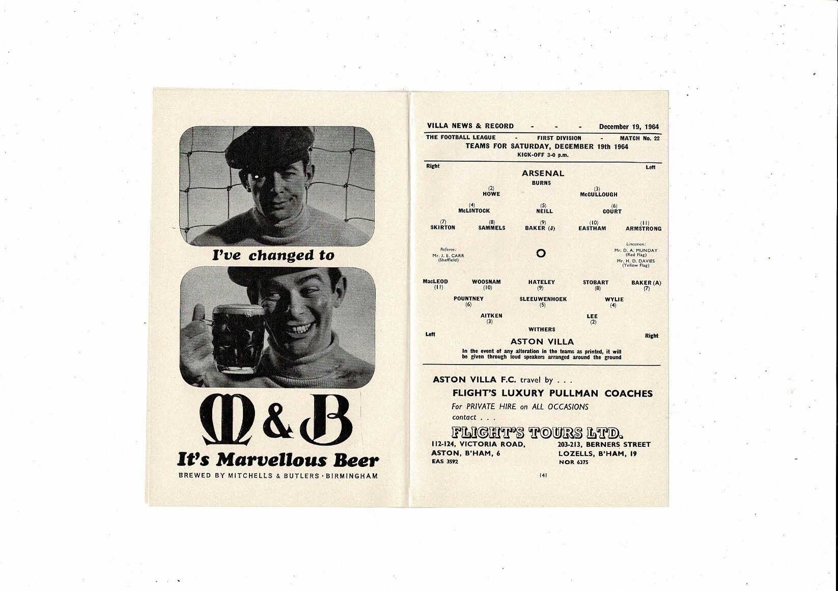 1964/65 Aston Villa v Arsenal Football Programme