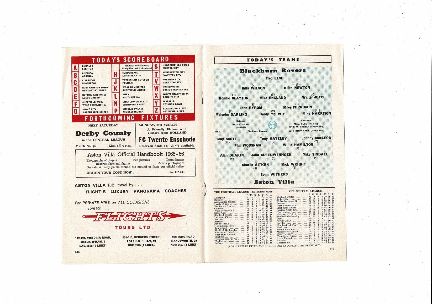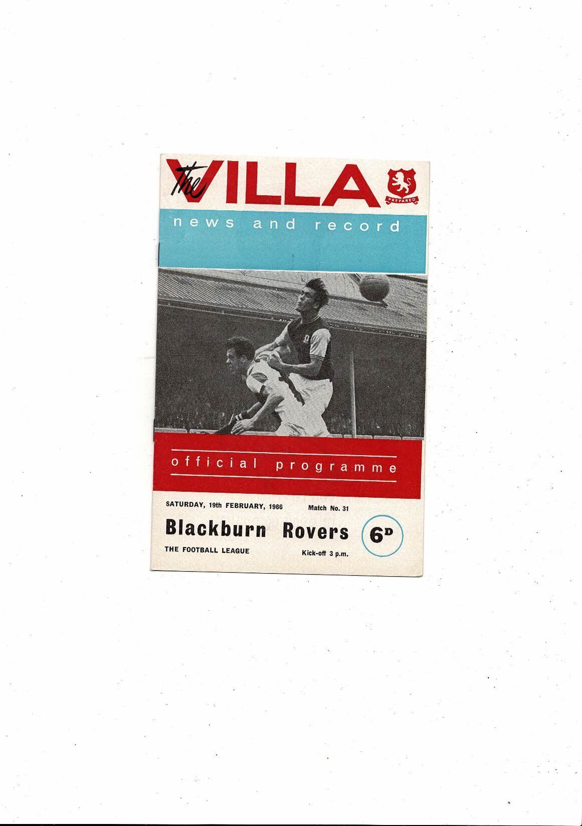 1965/66 Aston Villa v Blackburn Rovers Football Programme