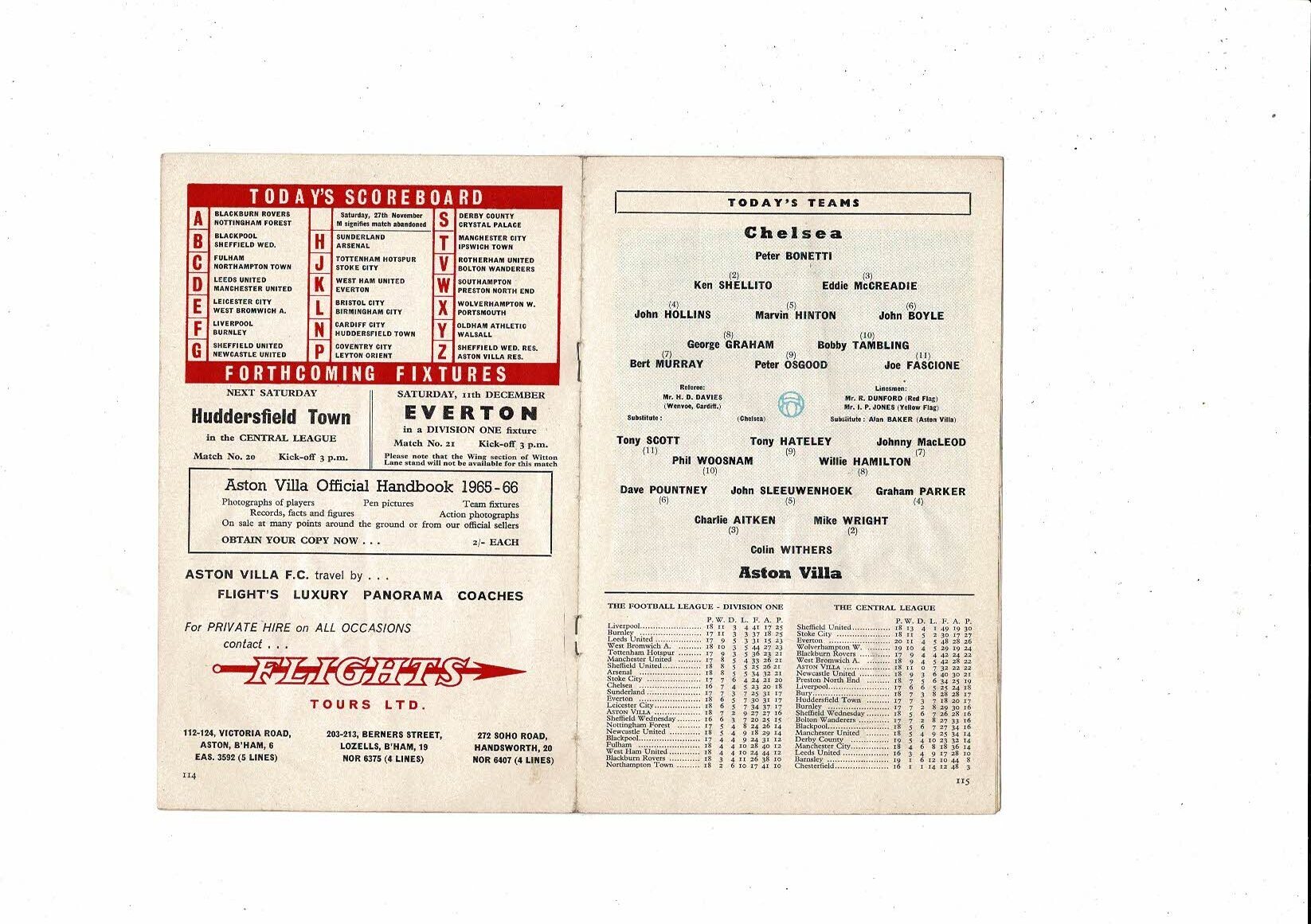 1965/66 Aston Villa v Chelsea Football Programme