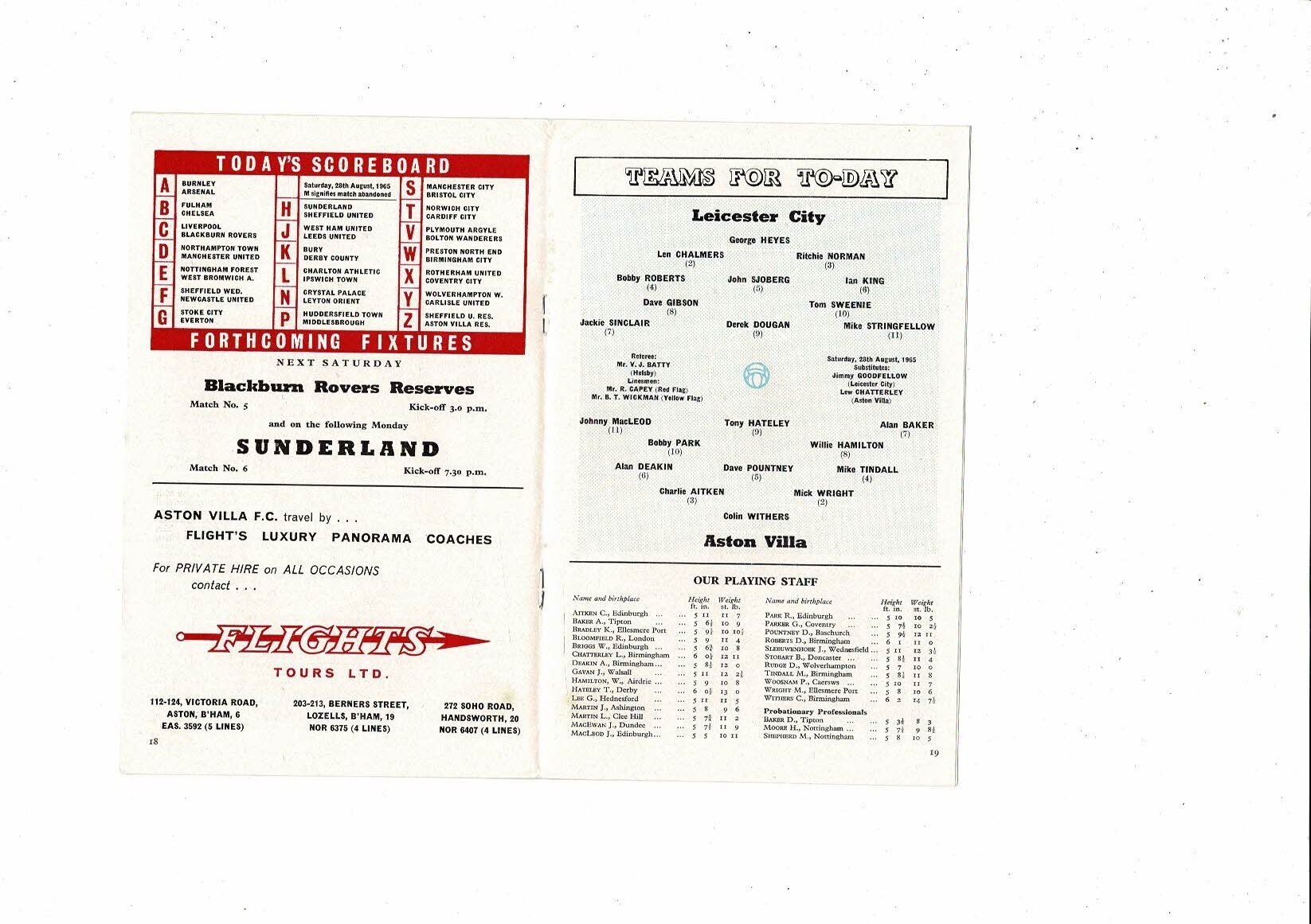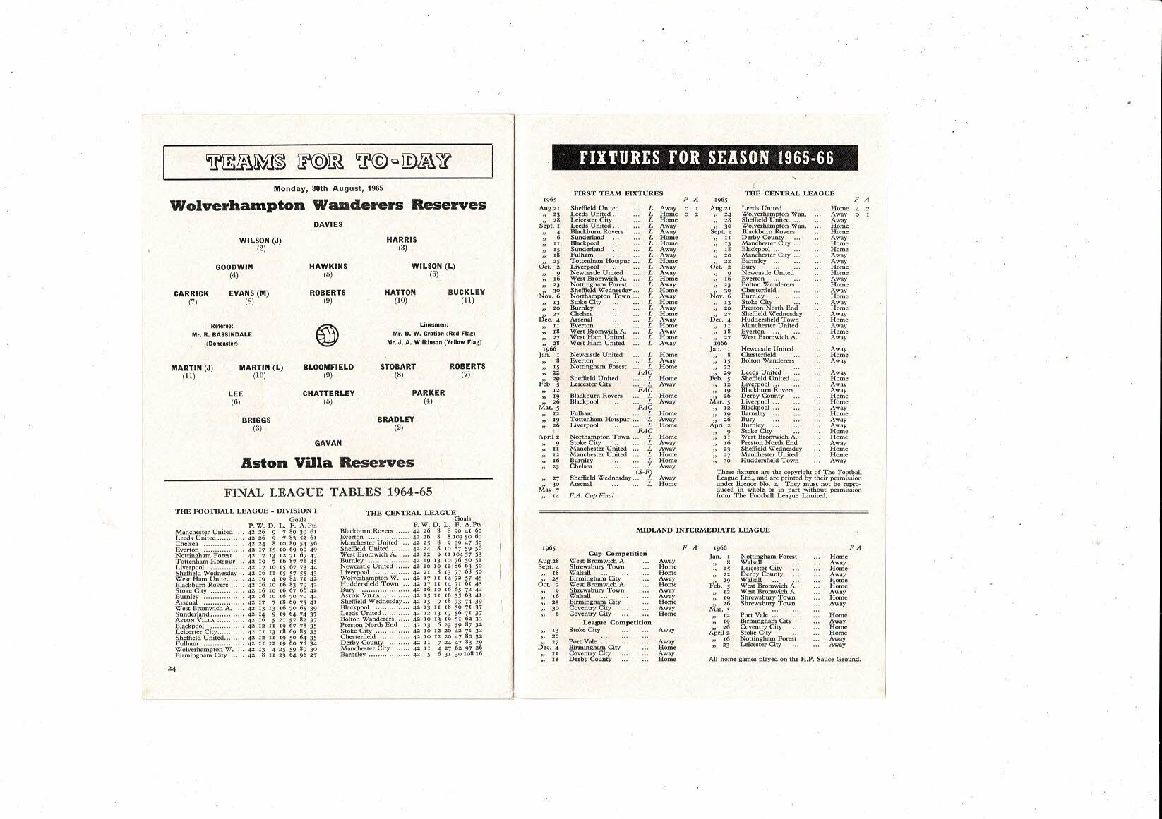 1965/66 Aston Villa v Leicester City & Wolves Reserves Double Football Programme