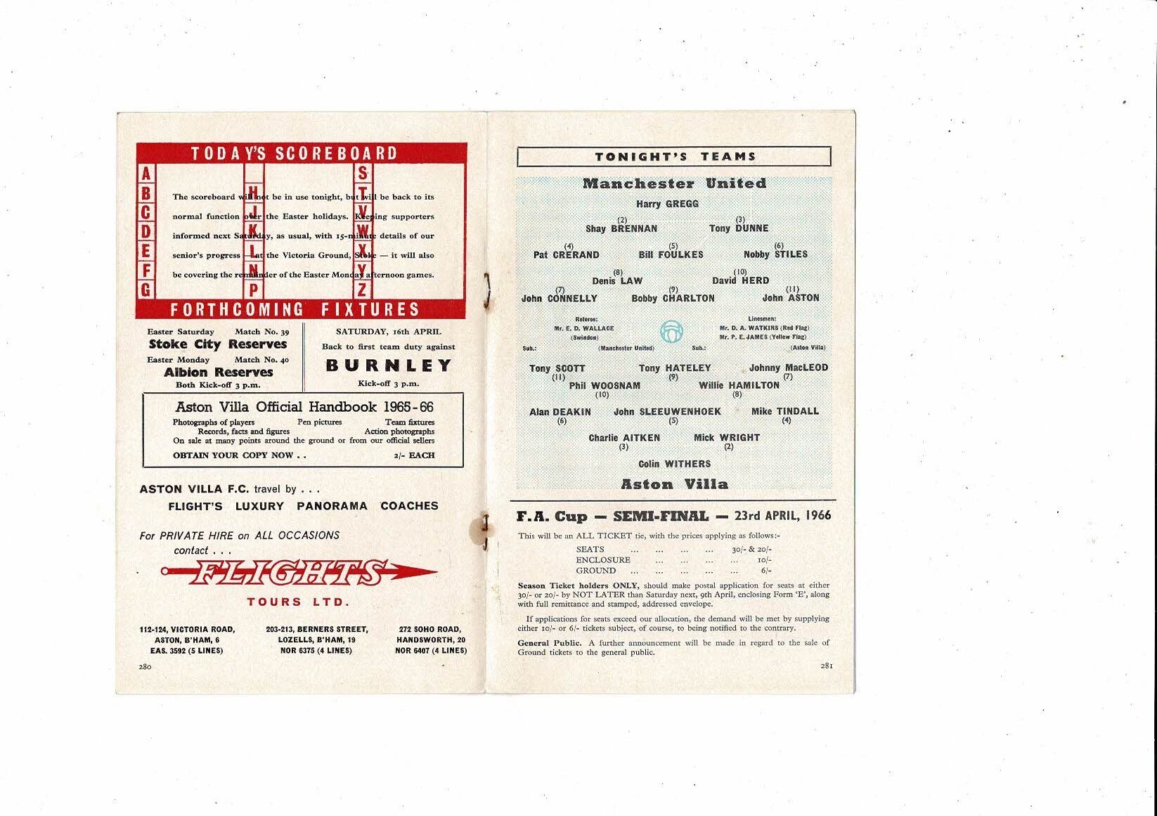 1965/66 Aston Villa v Manchester United Football Programme