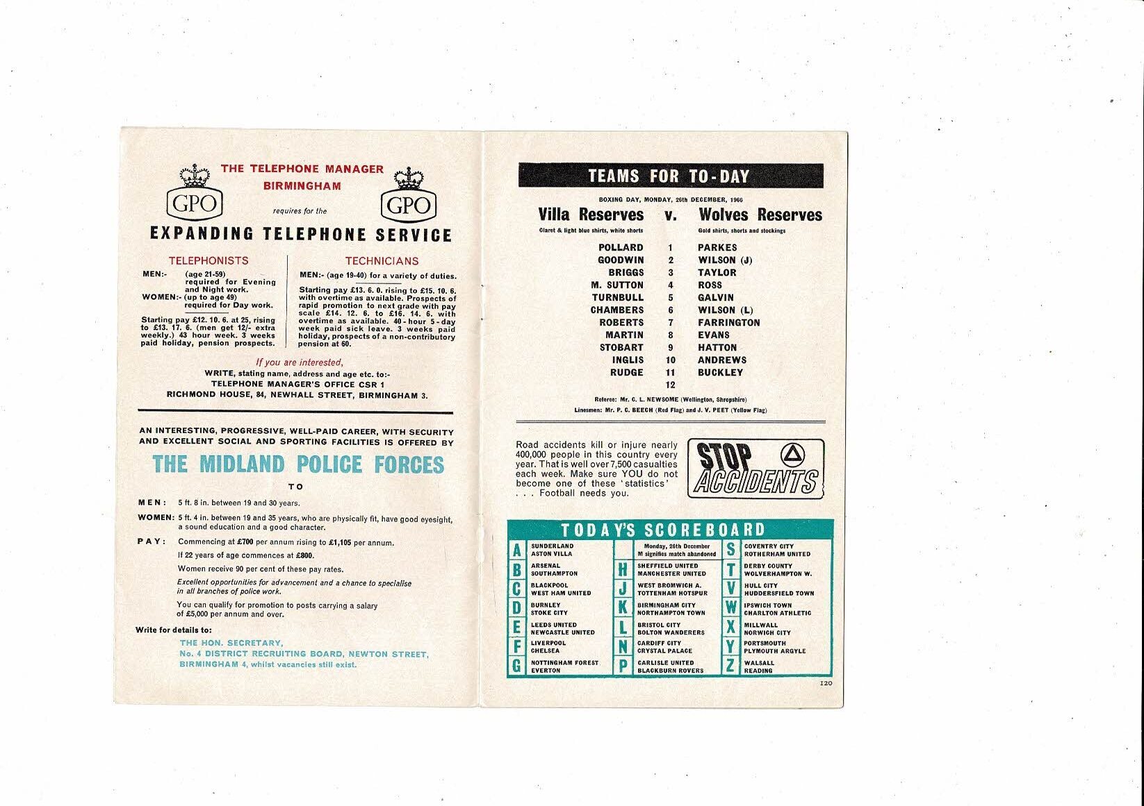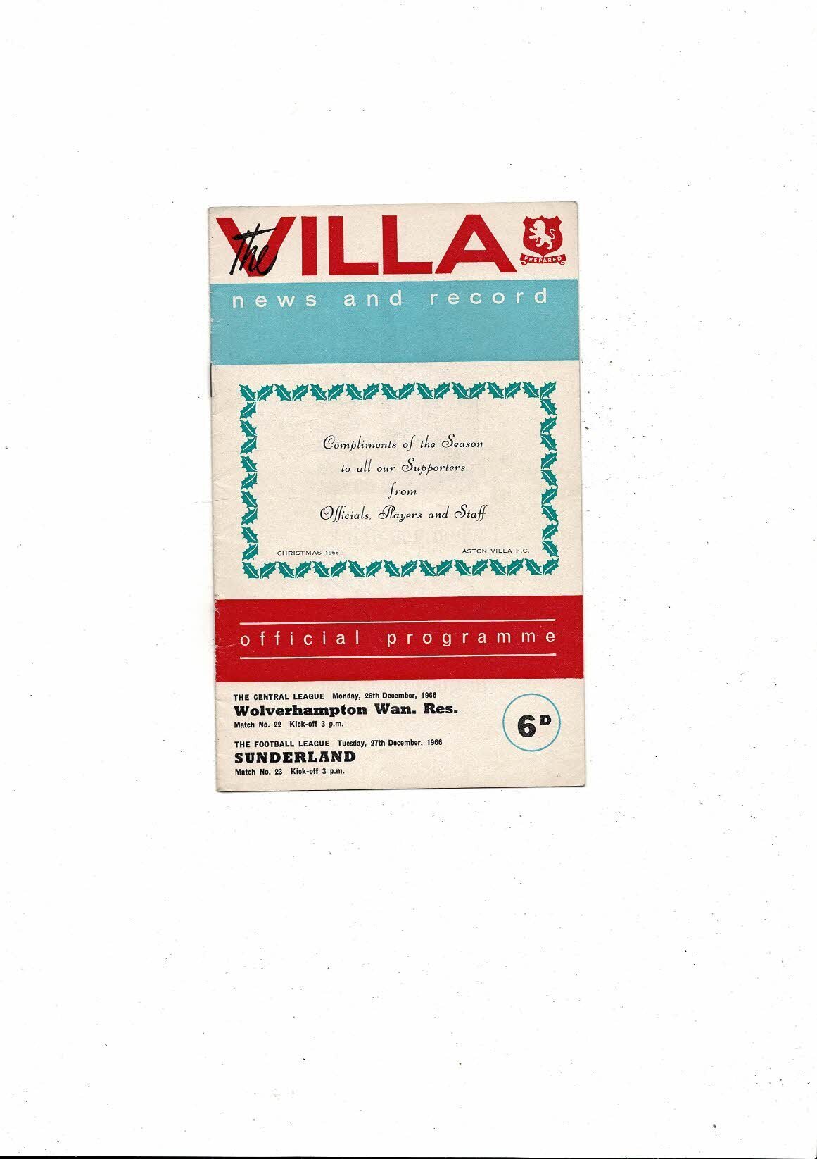 1966/67 Aston Villa v Sunderland & Wolves Reserves Double Football Programme