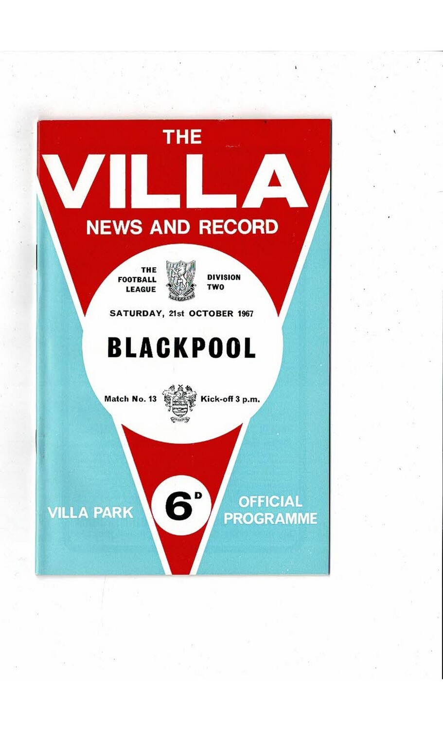 1967/68 Aston Villa v Blackpool Football Programme + League Review