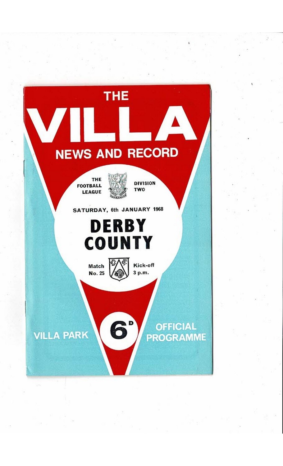 1967/68 Aston Villa v Derby County Football Programme + League Review