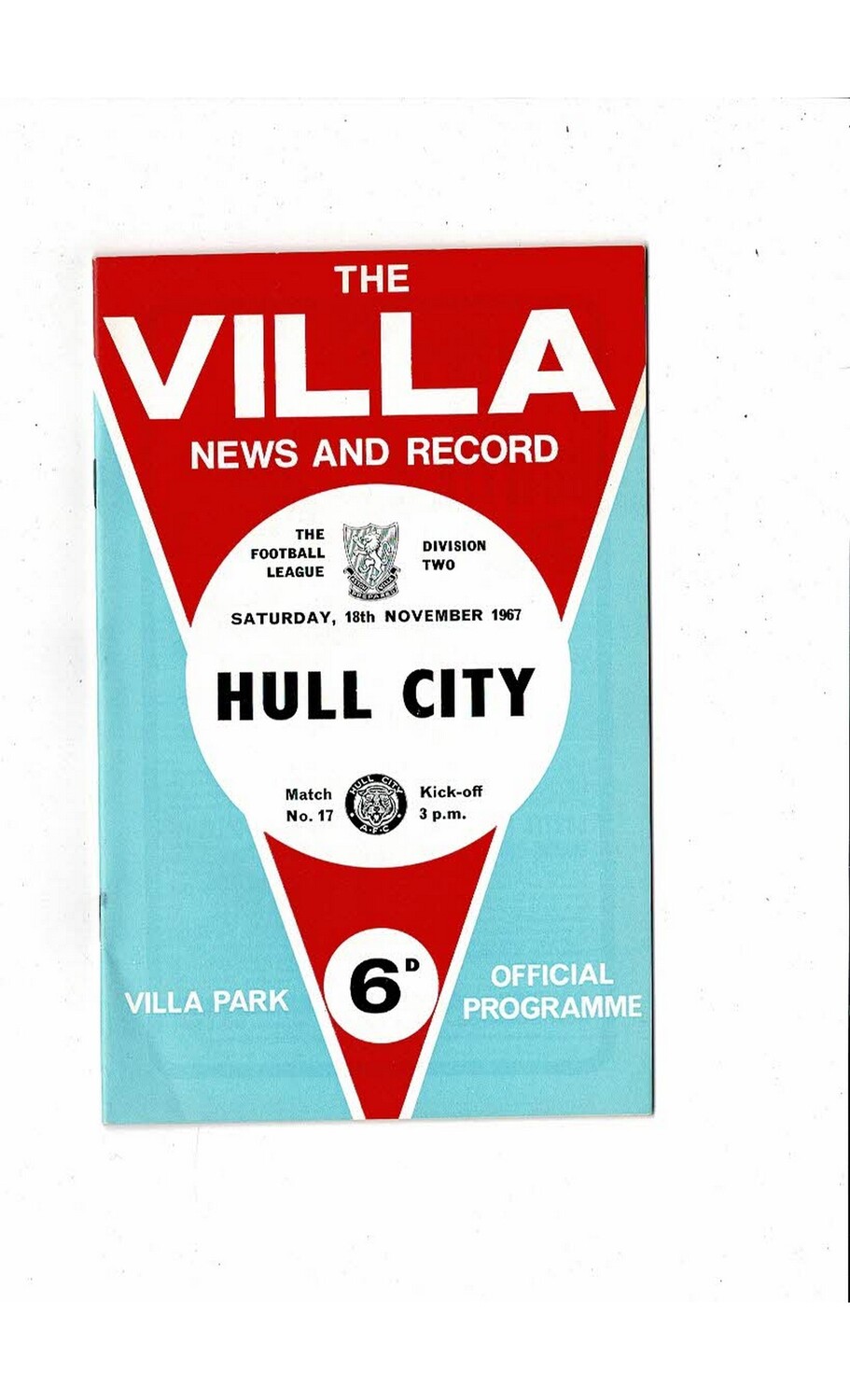 1967/68 Aston Villa v Hull City Football Programme + League Review