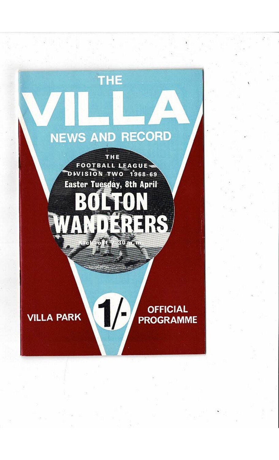 1968/69 Aston Villa v Bolton Wanderers Football Programme + League Review