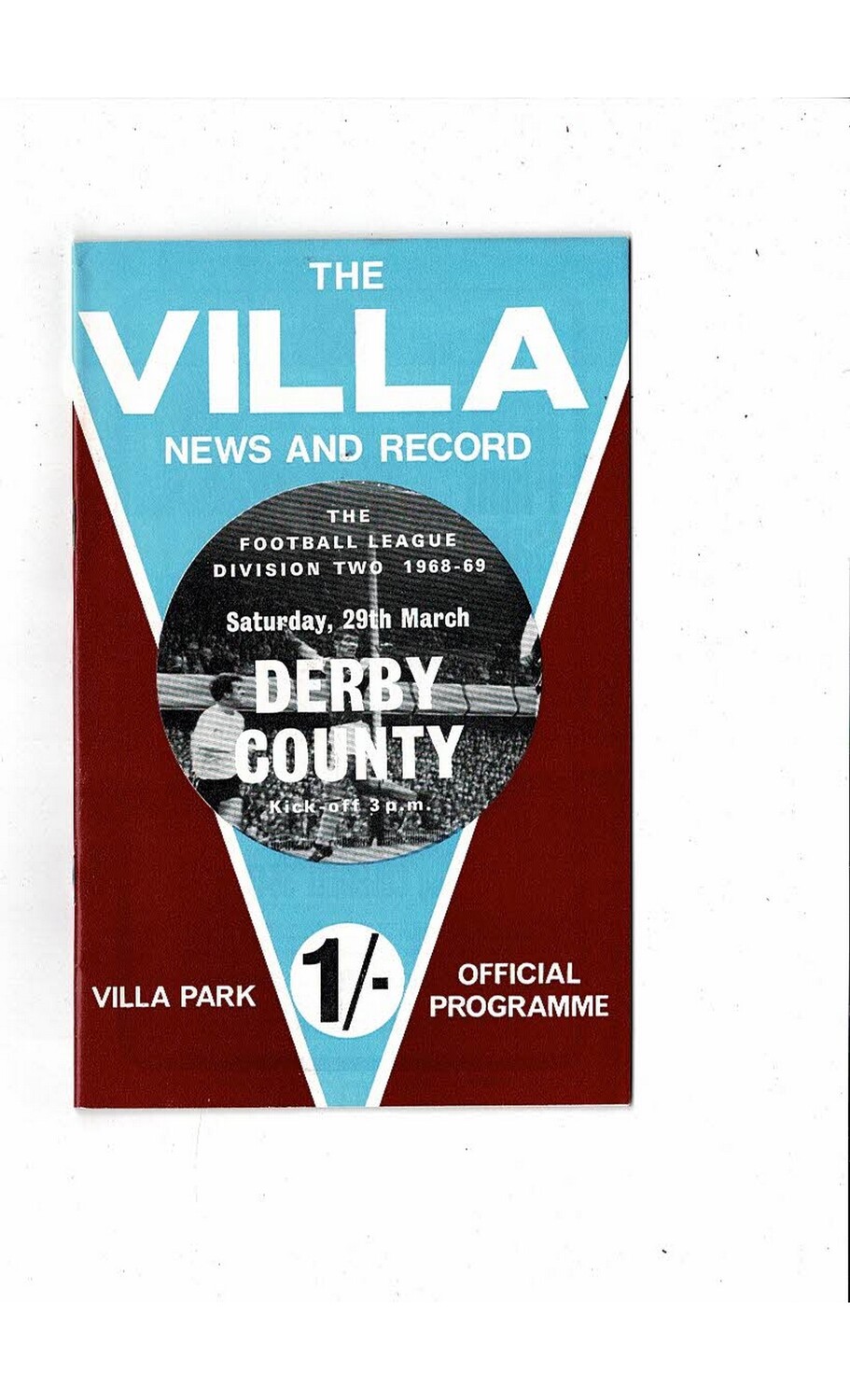 1968/69 Aston Villa v Derby County Football Programme + League Review