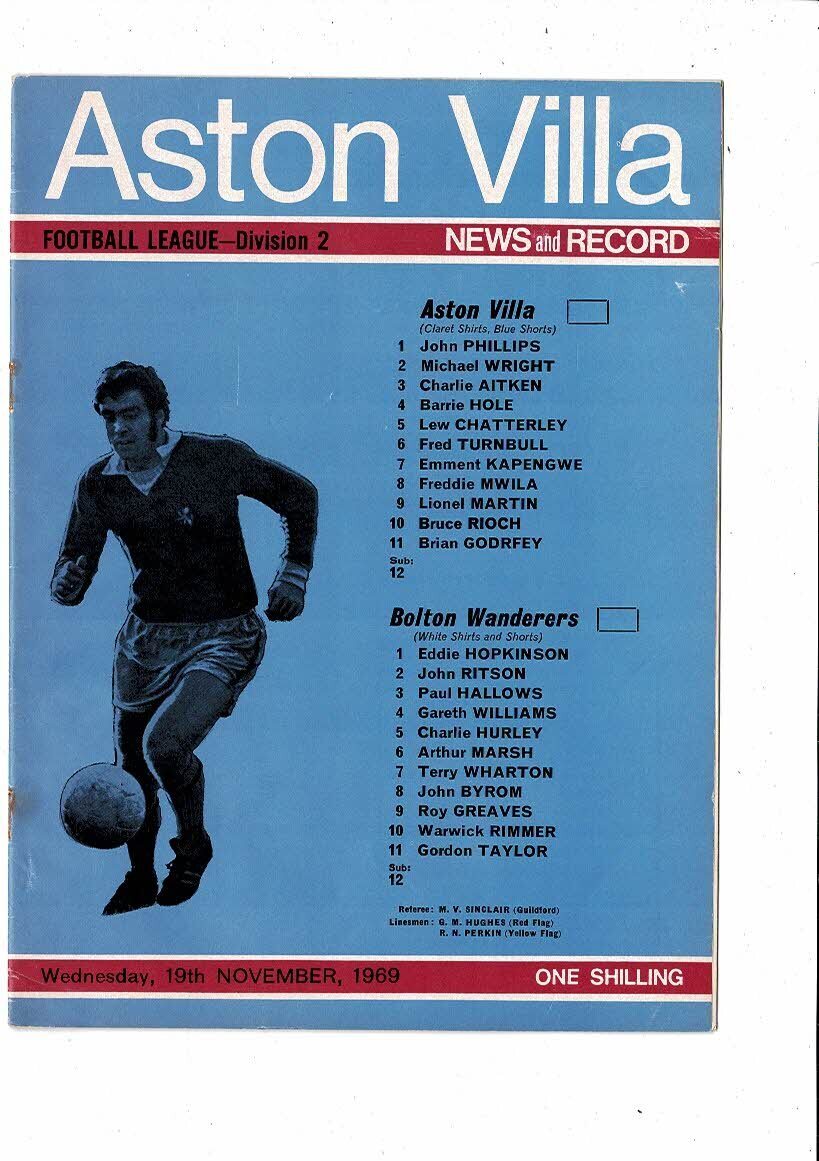 1969/70 Aston Villa v Bolton Wanderers Football Programme