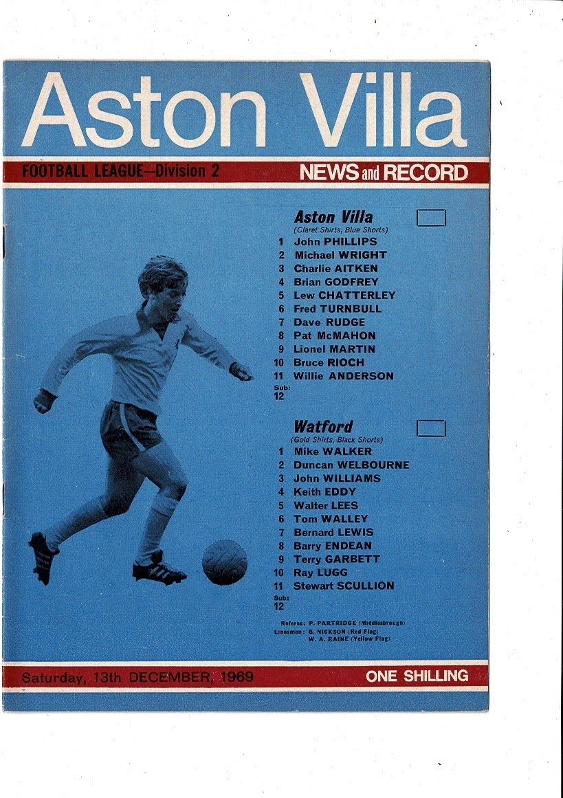 1969/70 Aston Villa v Watford Football Programme