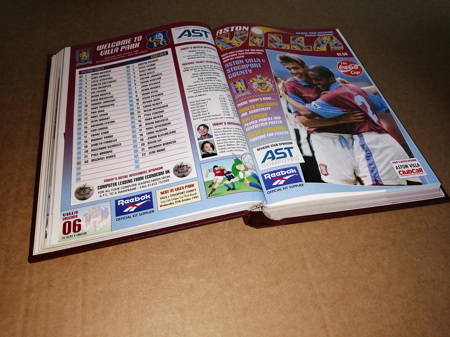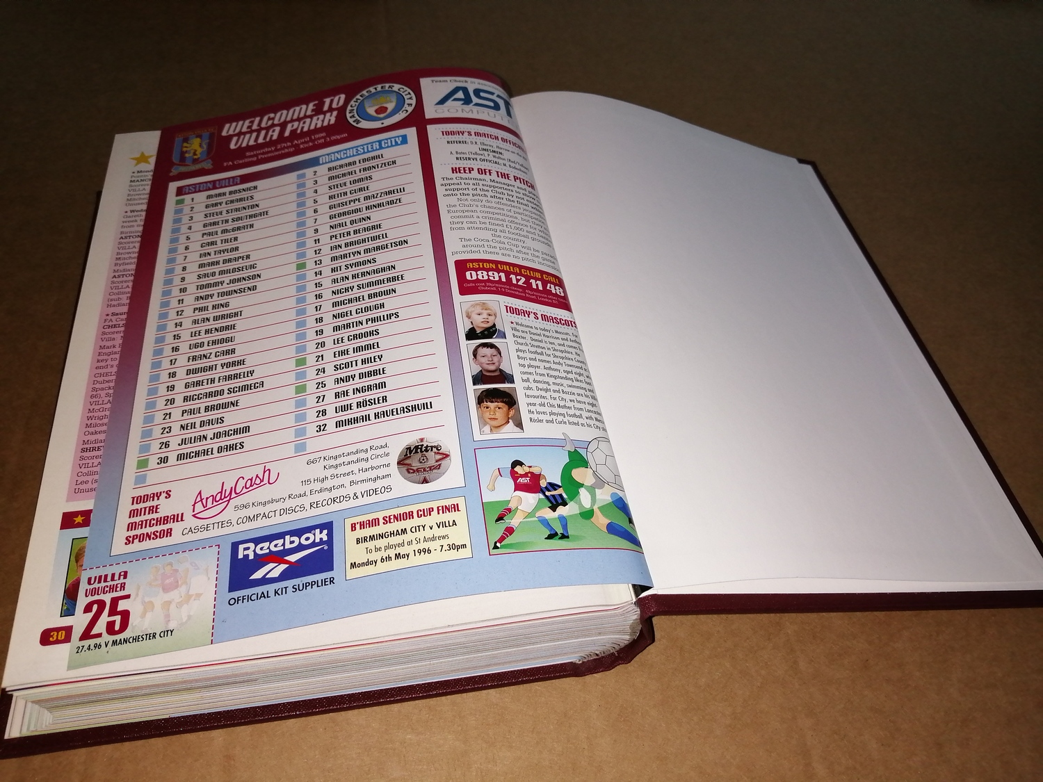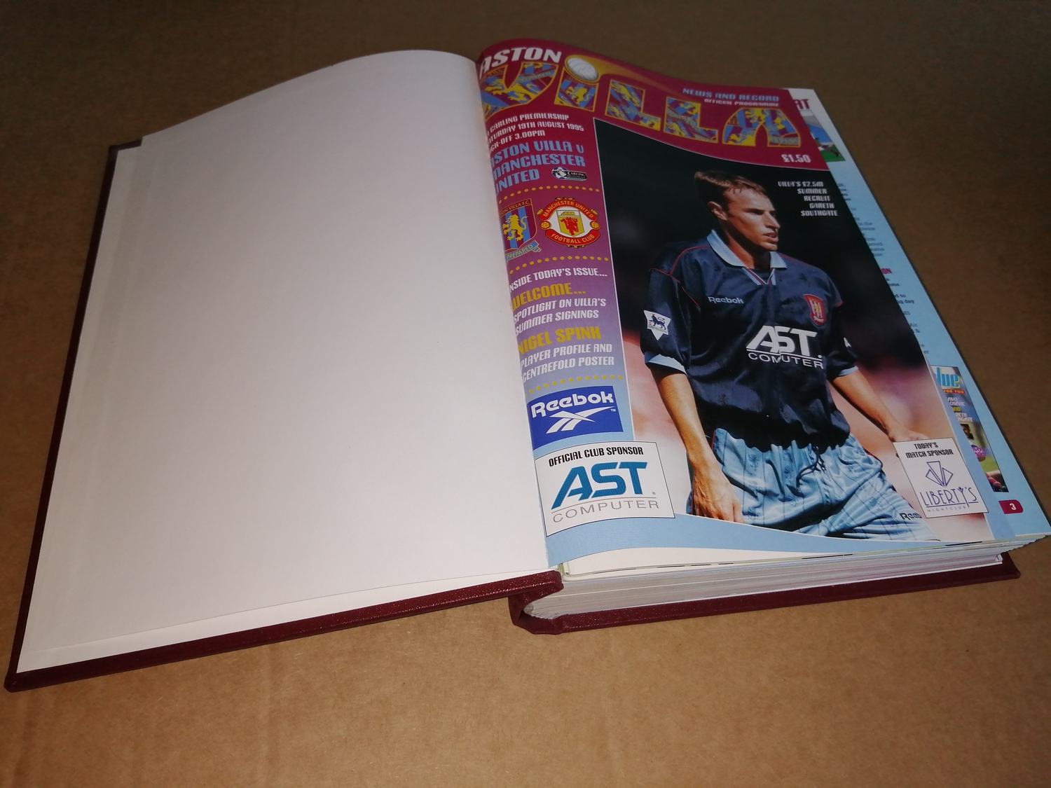 This Aston Villa 1995/96 Season Bound Volume of Football Programmes is very slightly creased. No handwriting. Please see scans.