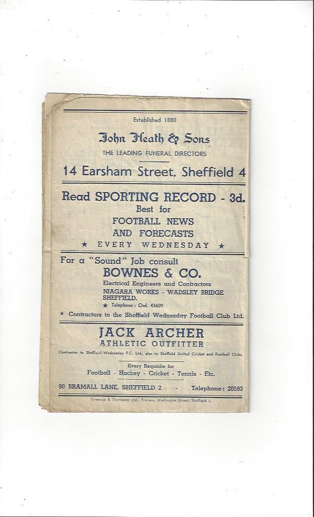 1947/48 Sheffield Wednesday v Barnsley Football Programme