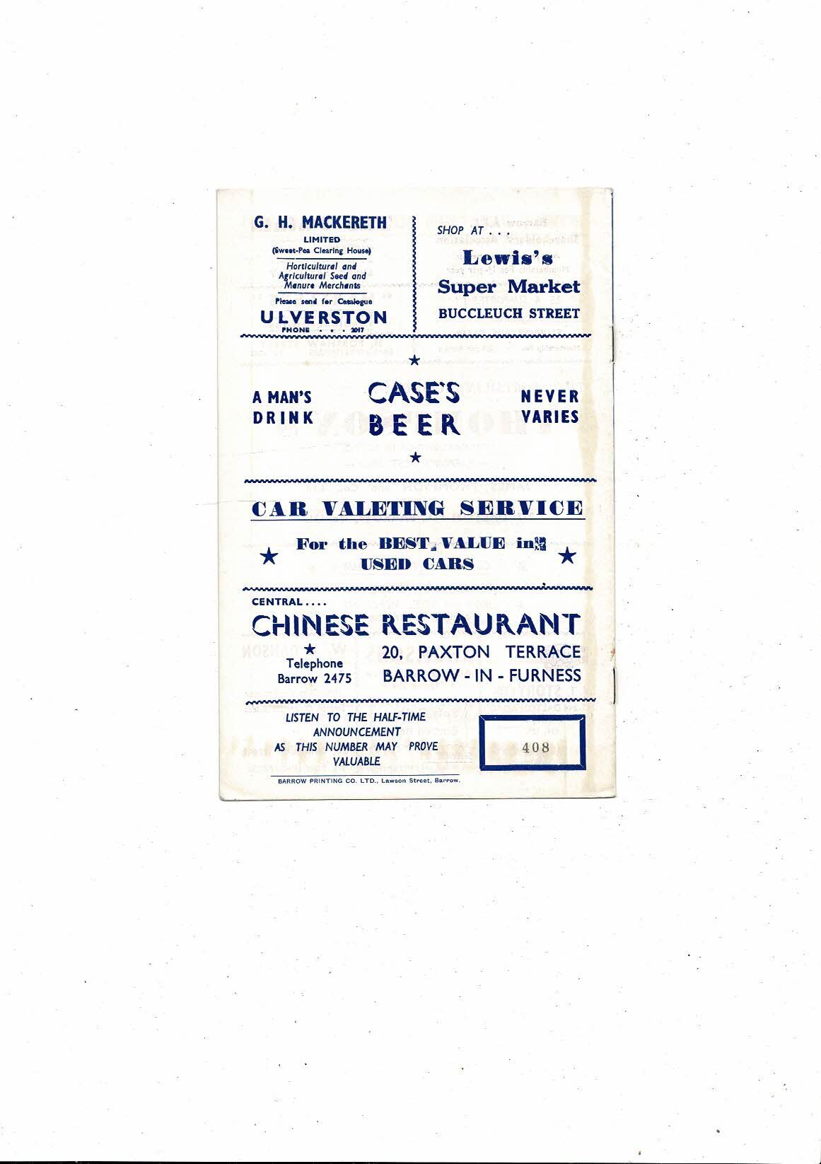 This original Football Programme is creased with some staining. No handwriting