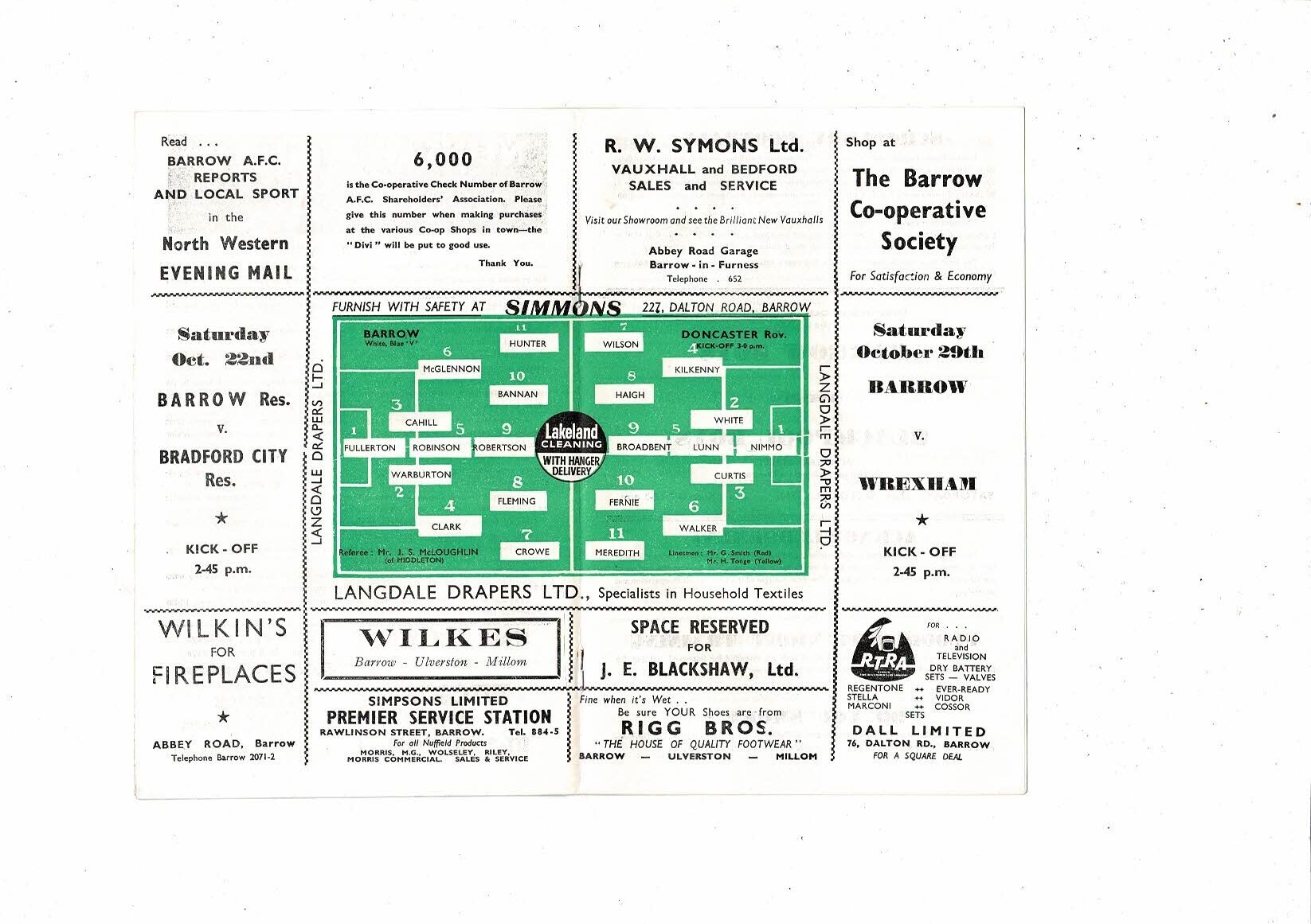 1960/61 Barrow v Doncaster Rovers Football Programme