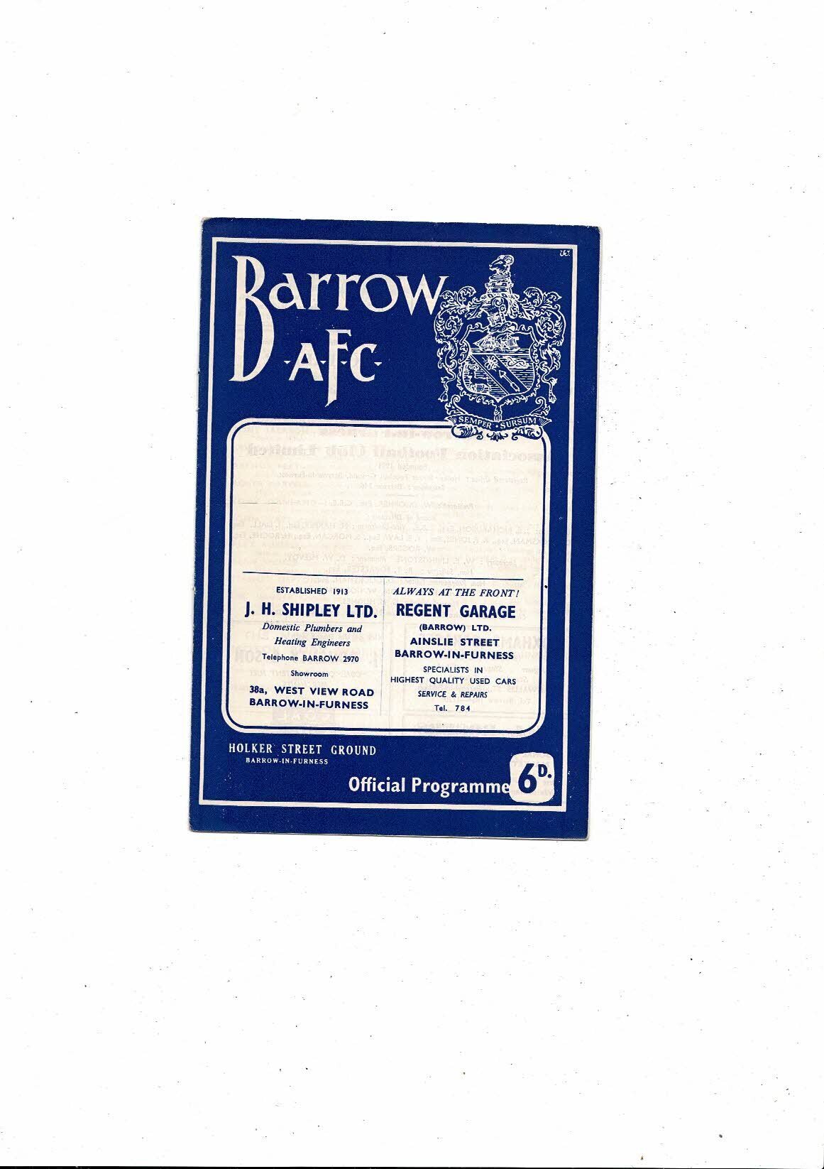 1964/65 Barrow v Southport Football Programme